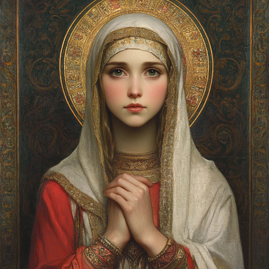 Юная Нина всей душой любила Господа и часто обращалась в молитвах к Пресвятой Богородице, спрашивая, как ей послужить Богу. Ответ был чудесным: Сама Царица Небесная явилась деве во сне, вручила ей крест, сплетенный из виноградной лозы, и благословила на путь в Иверию (нынешнюю Грузию), пообещав быть ей неизменной Заступницей.