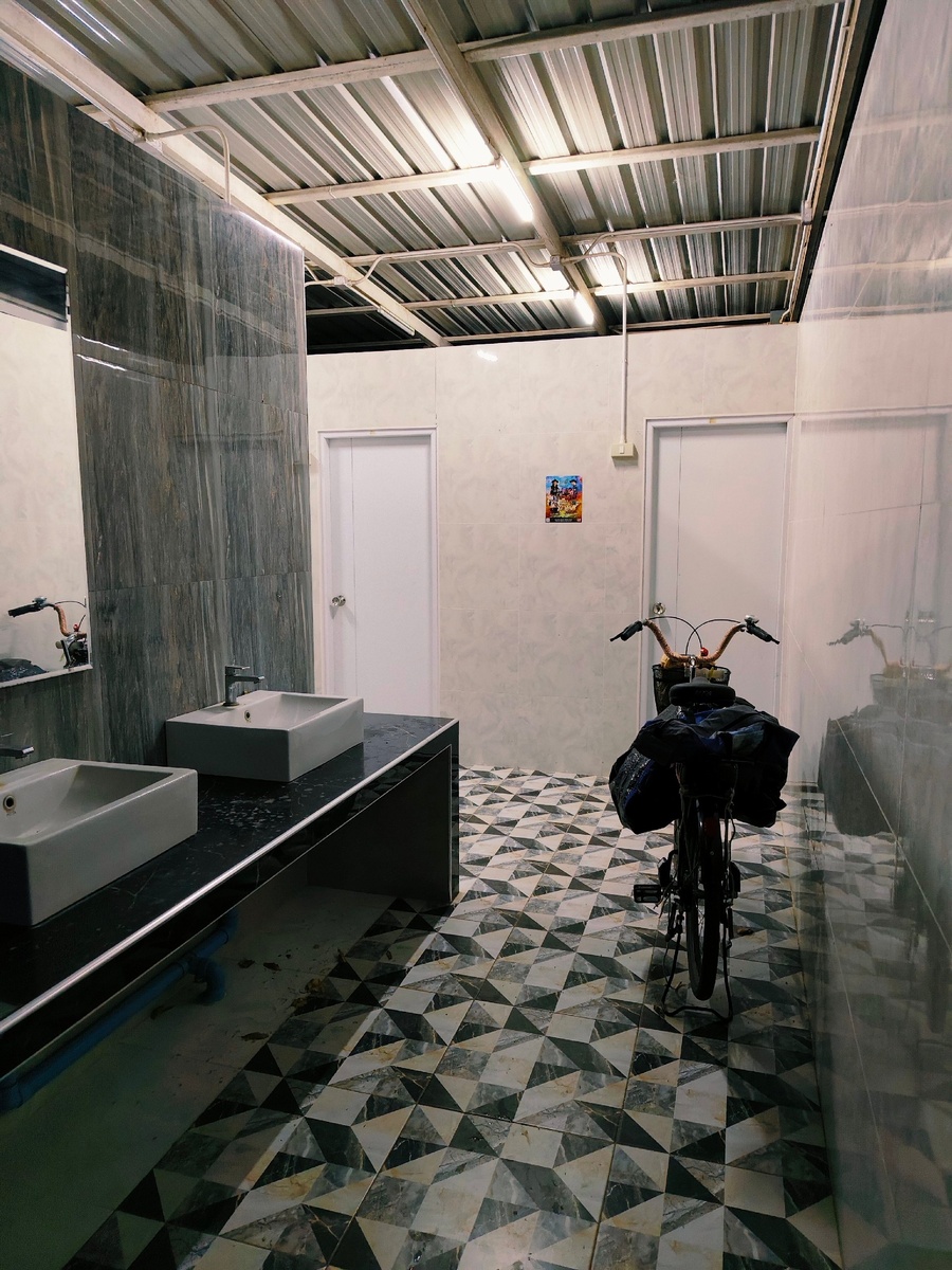 Снова порыва ветра, на этот раз ещё сильнее. Я уже руками и ногами держу края палатки, чтоб не разорвало😱 Всë это длится уже несколько часов, но ураган не затихает, наоборот сановится всë хуже. Палатка вот-вот просто лопнет. Я решаю - пора спасать основные вещи и эвакуироваться. Рассовываю всë по сумкам и пакетам, связываю вместе с рюкзаком, чтобы добавить вес и не снесло ветром. Вылезаю наружу и бегу к туалету - единственному открытому ночью зданию со стенами. Впереди второй заход - велосипед, он ещё внутри, да и палатку хочется спасти. Возвращаюсь.