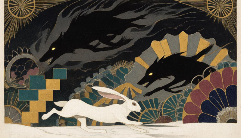 Прибежали опасные шаги и запах. Что-то взяло его за уши и трава ушла вниз. В тот миг Заяц увидел, что пространство немного шире, оно бесконечно.