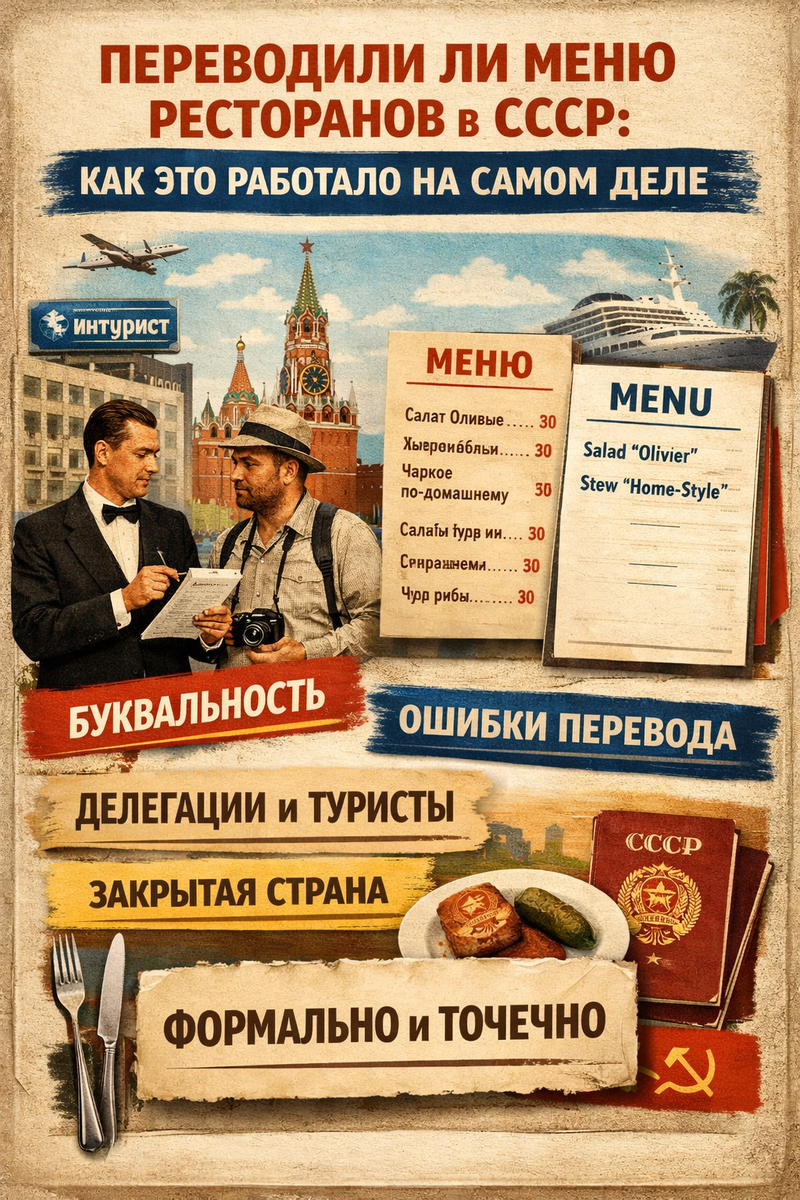 Иностранные посетители в СССР появлялись редко и почти всегда находились под контролем государственных структур. Это напрямую влияло на то, где и как возникала необходимость перевода. Массовый общепит не сталкивался с задачей быть понятным для гостей из-за рубежа, поэтому переводы применялись точечно и строго по регламенту, без попытки улучшить восприятие кухни или повысить удобство выбора.