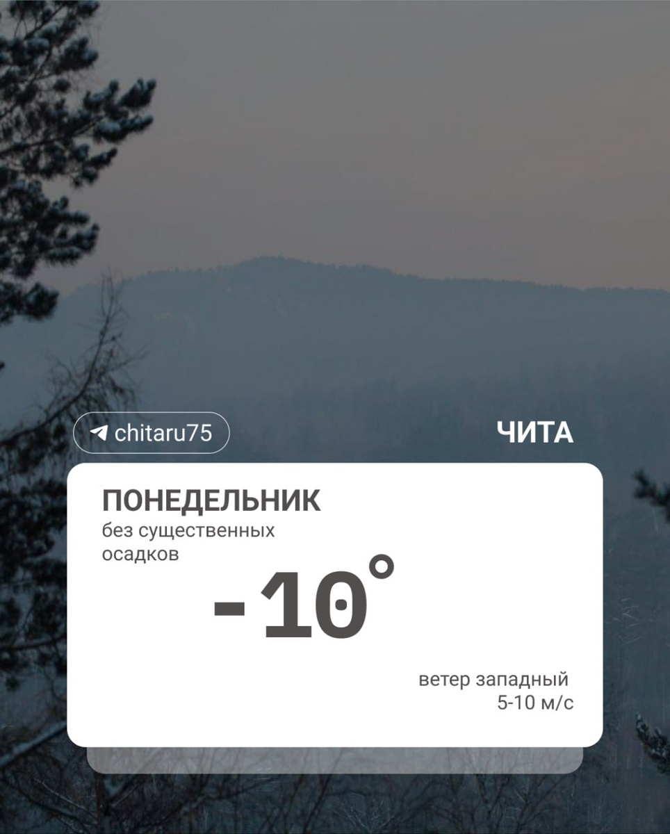 ⬆️ Ночью в Чите было чуть теплее, чем обычно — до -25 градусов. По Забайкалью до -27, по северным районам было -35, по южной половине — до -18. Днем по краю местами будет потепление — от -1 до -6 градусов.