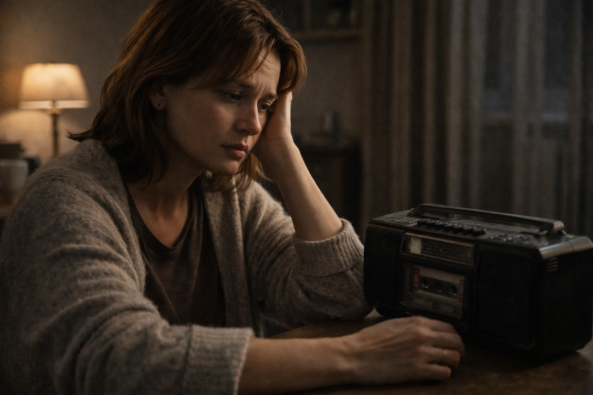 Я осталась одна на кухне. Поставила кассетник на стол, нажала крышку — она щёлкнула, как старый замок. Вставила кассету. Перемотала чуть назад, чтобы не пропустить первые секунды.