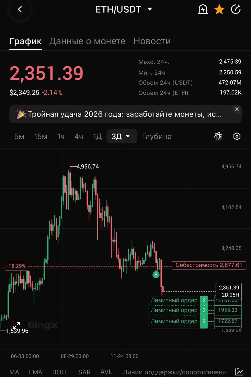 Eth часть лимиток собрана. Твх не очень ; думал что на 3 будет разворот , но и говорил что не влетаю на весь объем и раскинул до 1600 лимиты Канал с сигналами индикатора ✅https://t.me/COIN_FLIPS_SIGNAL ✅ 👉Торгую на Бирже BingX 😍 👉 Вступить в клуб ! [Ссылка здесь] 👉 Торгую на МЕМ на RADEX 👛 💬Telega| 📹Insta| 💬VK| Chat💬 | 📹YouTube | Rutube 📒| 💃TikTok