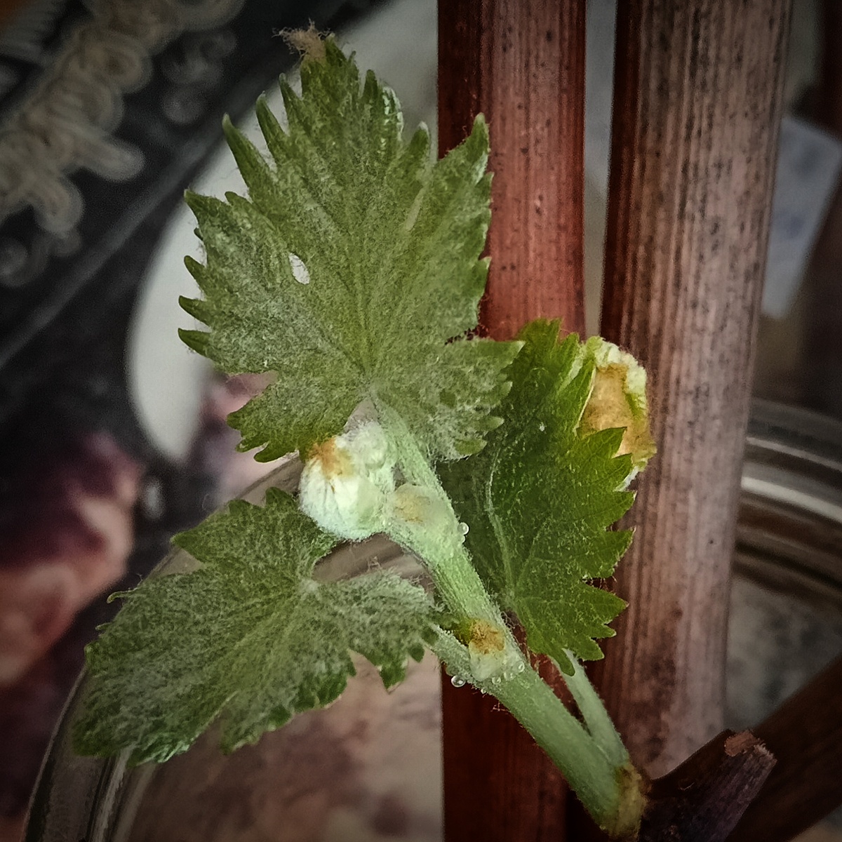 Молдова - не спешит, но на одном черенке пустил корень прямо из нижней тронувшейся почки. Вообще, я читала, нижние почки многие не оставляют, выламывают, но я решила не убирать, пусть растет.