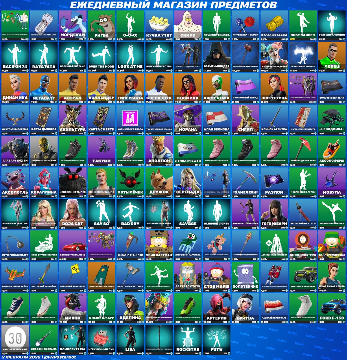 💙Магазин предметов Fortnite (понедельник, 02 февраля 2026)!