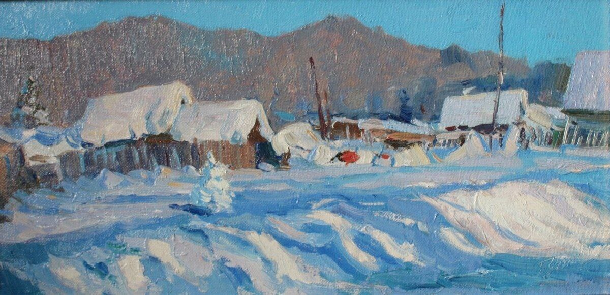 БЕЛЫЙ МЕСЯЦ — ЧАГАН АЙ (январь) На лыжах дети пролетят, И по лыжням, вослед Скользит за ними на закат Рассветный колкий свет. Как вдох морозный — краток день. Как песнь — длинны пути. Возьми коня, тулуп надень И друга навести. Плывет морозная звезда Сквозь искры очага. Вдвоем — короче холода. Вдвоем — теплей снега... Борис Укачин из цикла " Алтайский лунный календарь" Пейзаж Евгения Бучнева "Январские тени" #литературагорногоалтая #живописьгорногоалтая