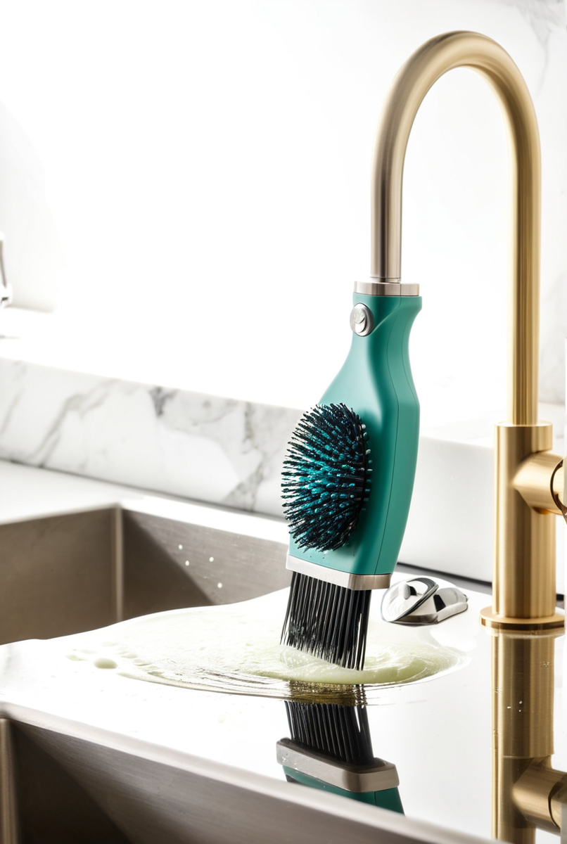 Это современный товар для дома, который делает мытье тарелок удобнее․ Моющее средство подается на щетину нажатием кнопки, что экономит его и время, а также упрощает удаление жира․ Нескользящая ручка обеспечивает удобный хват․