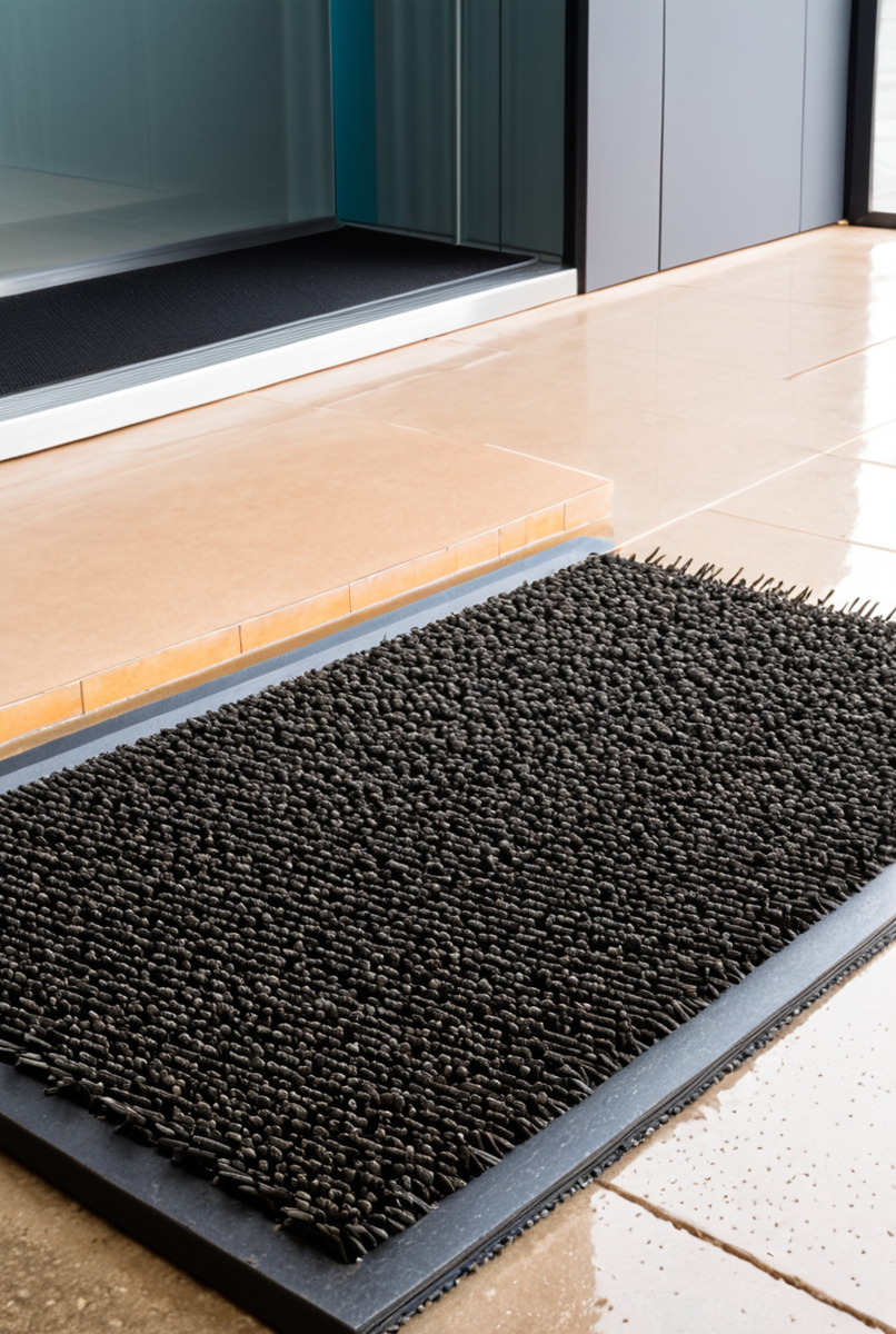Входная группа, это первая линия защиты пола от уличной грязи. Здесь грязезащитный коврик играет важную роль. Щетинистый грязезащитный коврик — это особое покрытие, созданное для первой, самой грубой очистки обуви. Его структура состоит из двух ключевых элементов. Верхний — это рабочий слой: очень жесткий ворс, выполненный из прочного полипропилена. Эти упругие волокна соскребают с подошв крупные частицы грязи. Нижний элемент, это основа. Надежная резиновая основа (или современная ПВХ основа) плотно прилегает к полу, предотвращая скольжение и протекание влаги. Такой придверный коврик незаменим для обустройства таких зон, как тамбур или прихожая, где и нужна же максимальная защита пола. Щетинистый грязезащитный коврик ценится за три ключевых качества. Во-первых, это исключительная износостойкость; Благодаря прочному полипропиленовому ворсу и плотной резиновой основе, покрытие имеет очень долгий срок службы, что особенно важно для коммерческого использования. Во-вторых, гарантированный а