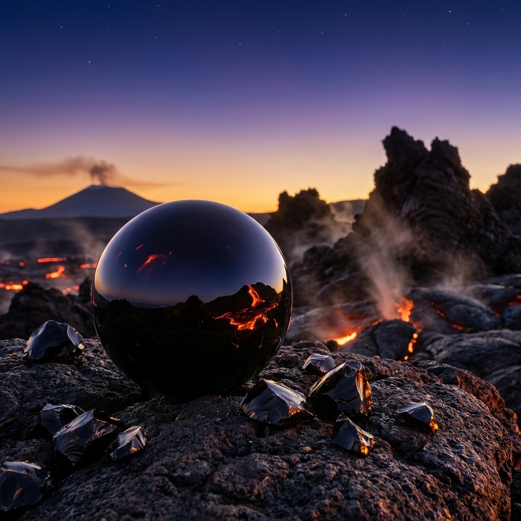 Представьте камень обсидиан, который появился из самого сердца вулкана. Расплавленная магма вырвалась на поверхность и мгновенно застыла, не успев превратиться в обычную породу. Так родился обсидиан — природное вулканическое стекло с глубоким черным цветом и зеркальным блеском.