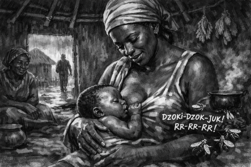 Я продолжал удивлялся, что мог думать своей маленькой головкой. Сучил ножками, видел трявяную крышу рунды, нашей хижины, моего нового дома, утрамбованный пол, скорее всего из глины. Я часто писался в пелёнки, нежась теплотой, что в эти минуты обволакивала меня. Часто лежал абсолютно голый рядом с мамой, а она что-то шила и пела. Я уже не мог вспомнить, писался ли я всю ту жизнь или тоже только маленьким.