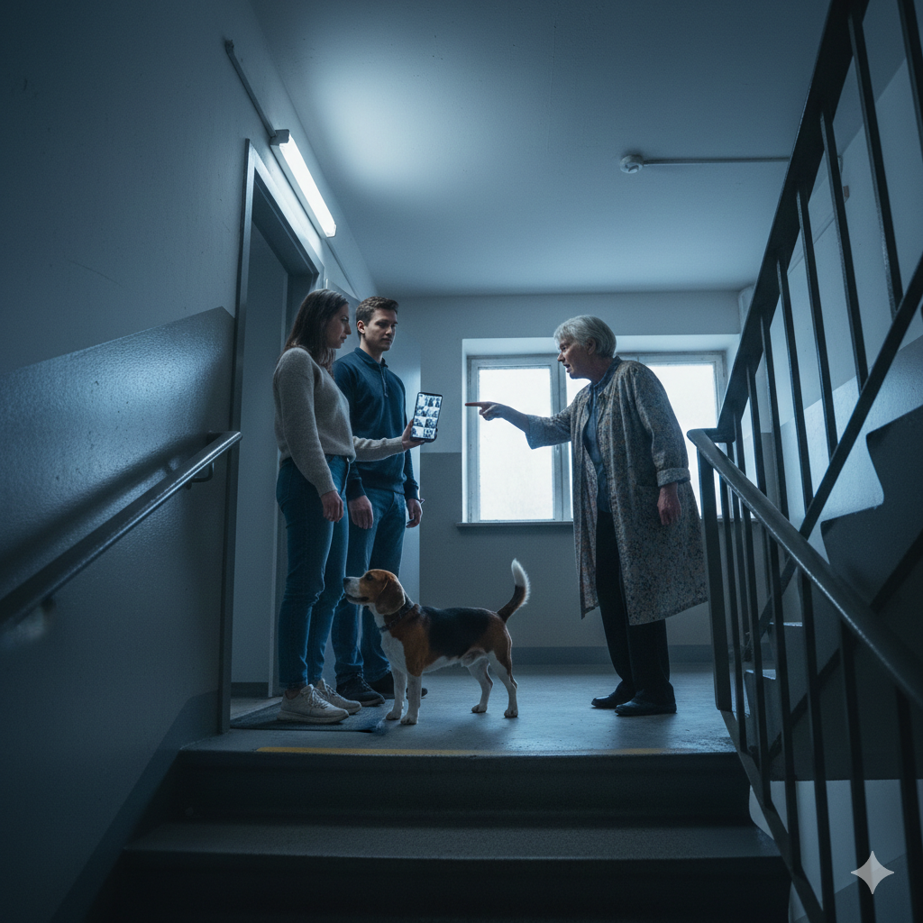 Мы завели собаку год назад. Бигль по кличке Чарли — умный, добрый, немного громкий. Бигли вообще любят подавать голос, это порода такая. В квартире он вёл себя хорошо. Лаял только когда кто-то звонил в дверь или проходил мимо по лестнице. Нормально для собаки. Сосед снизу думал иначе. Андрей Викторович — мужчина лет шестидесяти, жил один, работал из дома. Первый конфликт случился через неделю после появления Чарли. — Ваша собака лаяла! — он стоял на пороге в семь утра. — Я не могу работать! — Доброе утро, Андрей Викторович. Чарли лаял минуты две. Почтальон приходил. — Две минуты?! Это кошмар! Я потерял концентрацию! — Извините. Постараемся контролировать. Мы старались. Купили антилай-ошейник — Чарли его ненавидел, но лаять стал реже. Гуляли больше, чтобы уставал. Оставляли игрушки, чтобы не скучал. Но Андрей Викторович не унимался. — Ваша собака топает! — Это когти по ламинату. Мы положили ковры. — Ваша собака скулит! — Он скулил пять минут, когда мы уходили. Потом успокоился. — Ваша
