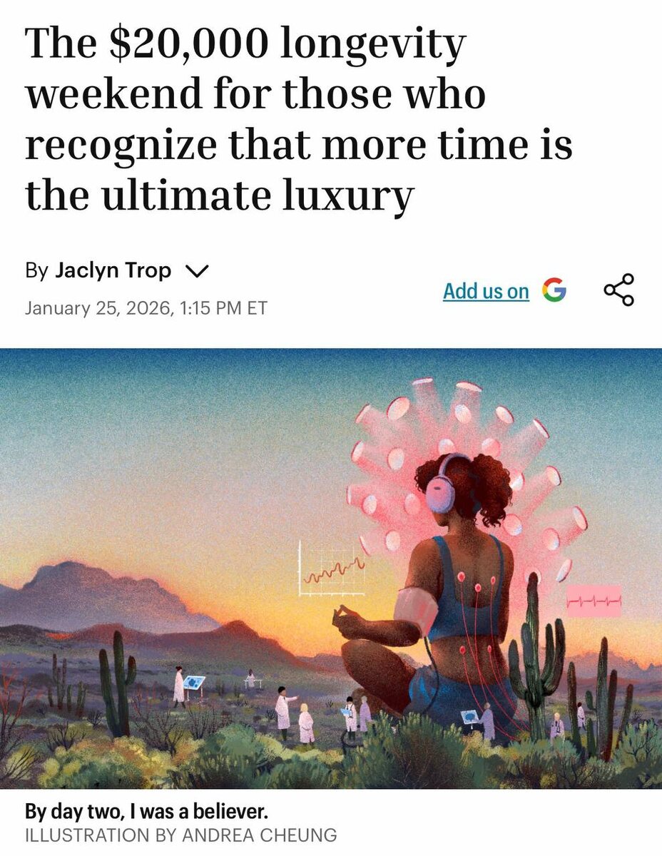 Привет, друзья! «Как биохакерские ретриты за 20 тысяч меняют представление о долголетии?» — звучит как сюжет для сатирического романа, не правда ли? В США начали продавать «дополнительные годы жизни» по цене, которую мог бы потратить средний американец на отпуск или небольшой автомобиль. Но давайте разберёмся, что стоит за этой маркетинговой уловкой. Триллионы долларов — вот сумма, которую уже оценили индустрию долголетия. Это больше, чем бюджет некоторых стран. Крупные компании, от биотеха до отельных сетей, вкладываются в эту сферу, превращая отели в клиники. Но что мы получаем за эти деньги? Пересмотр образа жизни и полный медосмотр — звучит как набор услуг, которые должны быть доступны каждому, а не как эксклюзивное предложение за 20 тысяч долларов. Интересно, что в условиях, когда научные исследования и технологические инновации должны были бы сделать здоровый образ жизни более доступным, мы видим обратный тренд — элитарность и эксклюзивность. Это заставляет задуматься о том, кто