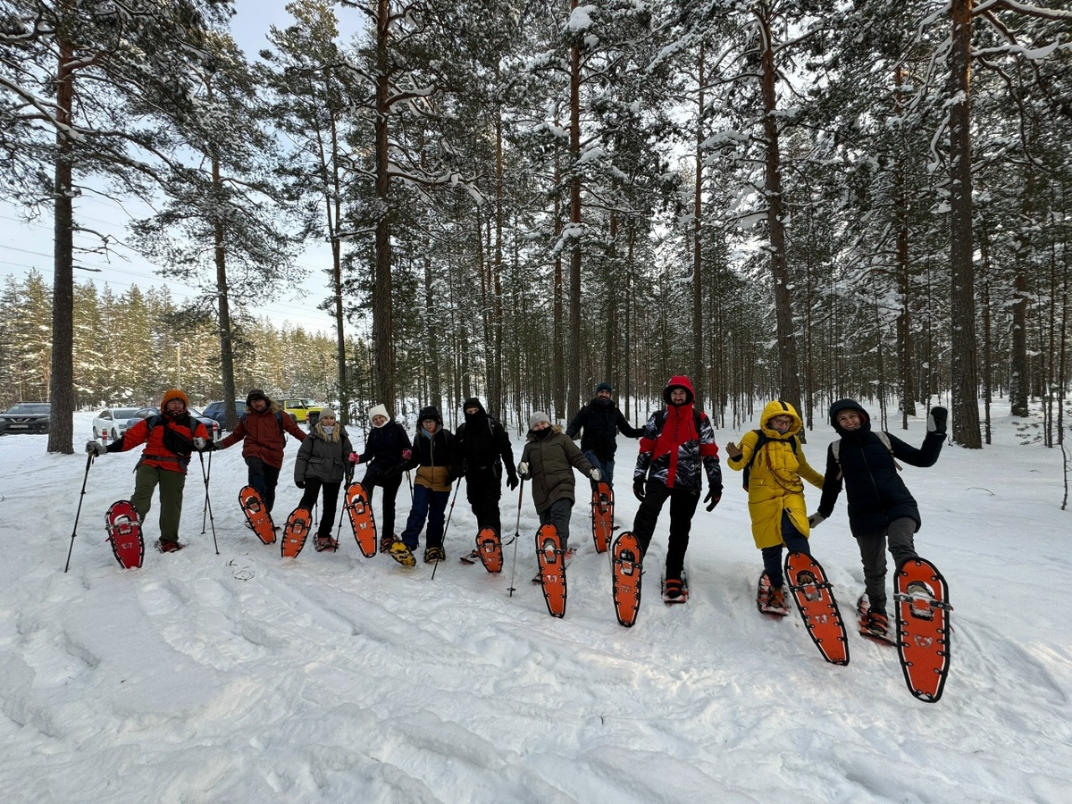 Ура! Первый сноухайк или снегоступинг или трекинг на снегоступах, как не назови состоялся! Спасибо 🙏 всем участникам, что поддерживаете проекты нашей команды… Двенадцать человек не считая собаки 🐶. Фокс культурный воспитанный песик добавлял мимишности всему походу:) То что снегоступы это круто, это ничего не сказать! Но обо всем по порядку. В начале мы посетили исторические места: старинные финские Амбары в Мичуринском и место где была Кирха Валкъярви, так поселок назывался при финнах. А дальше мы выехали к озеру Берестовое. Это дальний уголок заказника гряда Вярямянселькя. То что гряда протянувшаяся на 50км изобилует красивыми ландшафтами знают многие, но здесь еще малолюдно, так как добраться отсюда со станции Петяярви не близко. После небольшого инструктажа штурмуем на снегоступах гряду и находим бесчисленные заячьи следы и лосиные. Нашли даже лосиную лежку. В снегу отпечатался силуэт лосенка, что видно этой ночью спал здесь. На вершине сделали привал с кофием от меня, леге