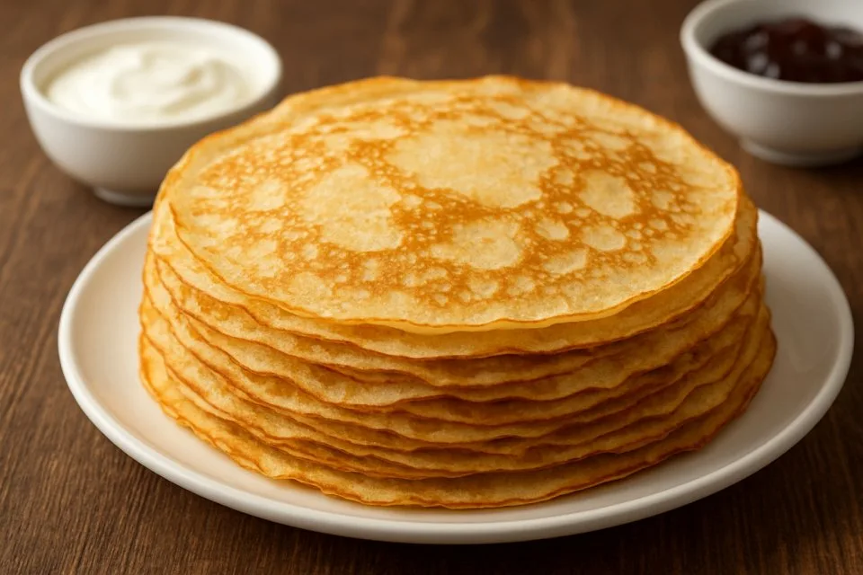 Есть на кухне вещи, которые не меняются. Ситечко для муки, потертое по краям. Деревянная ложка с темным пятном от бесчисленных замесов. И тяжелая чугунная сковорода, которая помнит руки твоей матери, а может, и руки её матери. И именно из этой сковородки приходят к нам блины. Не блинчики, а именно блины - плотные, ажурные, пахнущие детством. Их история начинается не с рецепта. Она начинается с ритма. С мерного постукивания яйца о край глиняной миски. С шелеста просеиваемой муки - белого облачка, оседающего на столе. С тихого шипения масла, растаявшего в чашке на краю плиты. Это медитативная, почти священная кухонная магия. Бабушка никогда не смотрела на часы. У неё было своё время - время теста. «Пусть постоит, пусть одумается», - говорила она, накрывая миску чистым полотенцем. И это «одумается» - ключевое. Тесто - живое. Оно дышит, растёт, созревает. Оно не терпит суеты. Оно впитывает в себя не только молоко и яйца, но и покой этой кухни, тиканье настенных часов, далёкий звук радио. А