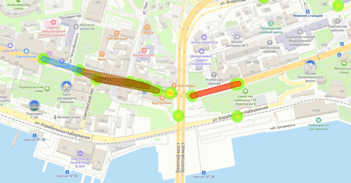проспекта и проспекта 100-летия Владивостока. В основном все ДТП происходили после полуночи, на прямой дороге или повороте, в том числе с наездом на препятствие. На проспекте 100-летия было ДТП со смертельным исходом и травмами, пострадало 2 человека, погибло тоже 2. На Светланской, в районе Золотого моста 1 человек погиб, 2 травмировались. В районе Гоголя авто съехало с дороги, зафиксировано одно ДТП со смертельным исходом. Еще одно фиксируется в районе Катерной, вероятно, это авария с придорожным кафе «Еда и точка», которое произошло в ноябре 2025 года. Также отметка стоит об аварии с двумя погибшими и двумя пострадавшими в августе в районе поворота в поселок Канал на острове Русский. Эти участки и без смертей оказались достаточно опасными и вошли в список аварийных. В течение года на них происходили от 2-10 ДТП разных типов в пределах 100-300 метров. 🟥Подписаться в Telegram | Предложить новость ➡️Подписаться в MAX