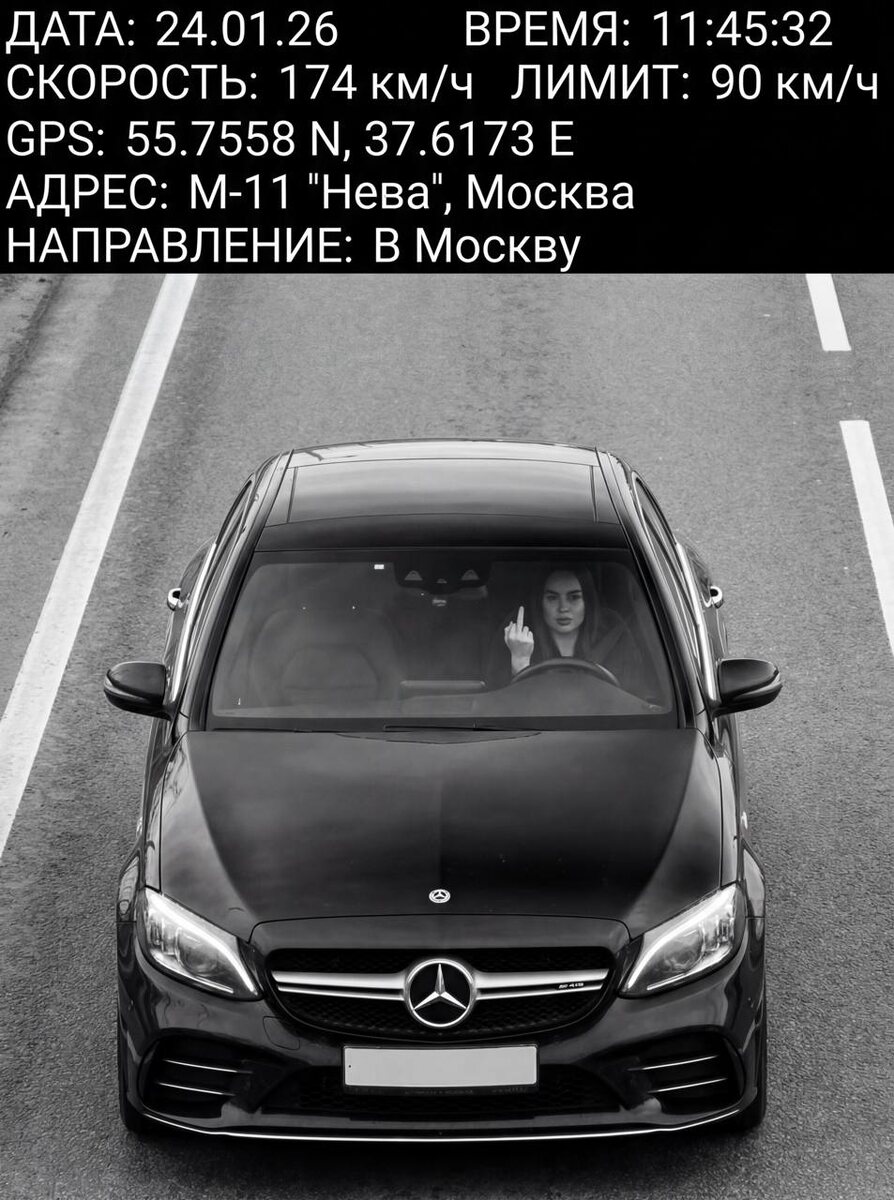 ? 👸 Инструкция: 1️⃣Переходи в NanoBanana (PRO) 2️⃣В настройках выбери кач-во 2K 3️⃣Загрузи фото, где хорошо видны черты лица 4️⃣Перед отправкой добавь промпт Промпт: Использовать исходное фото как строгий реф. Машина Мерседес бенс 43 черный , фронтальный вид, слегка сверху, как с камеры контроля скорости. Водитель - одна женщина из рефа, 100% идентичен; пассажирского нет. чётко видна через лобовое и показывает средний палец ( fuck ) в камеру. Стиль - документальный кадр автоматической камеры: высокая выдержка, сверхчётко, разметка дороги видна. Оверлей штрафа - полностью как в оригинале (язык, шрифт, верстка, данные: скорость, лимит, дата/время, GPS, адрес, направление). Цвет - чёрно-белое, высокий контраст, реалистичная плёночная зернистость, дневной/ пасмурный свет. Итог - ультрареалистично, выглядит как Настоящий штраф с камеры, не постановка и не CGI. 💗 Кликай /start и забирай 10k бонусов на первую генерацию