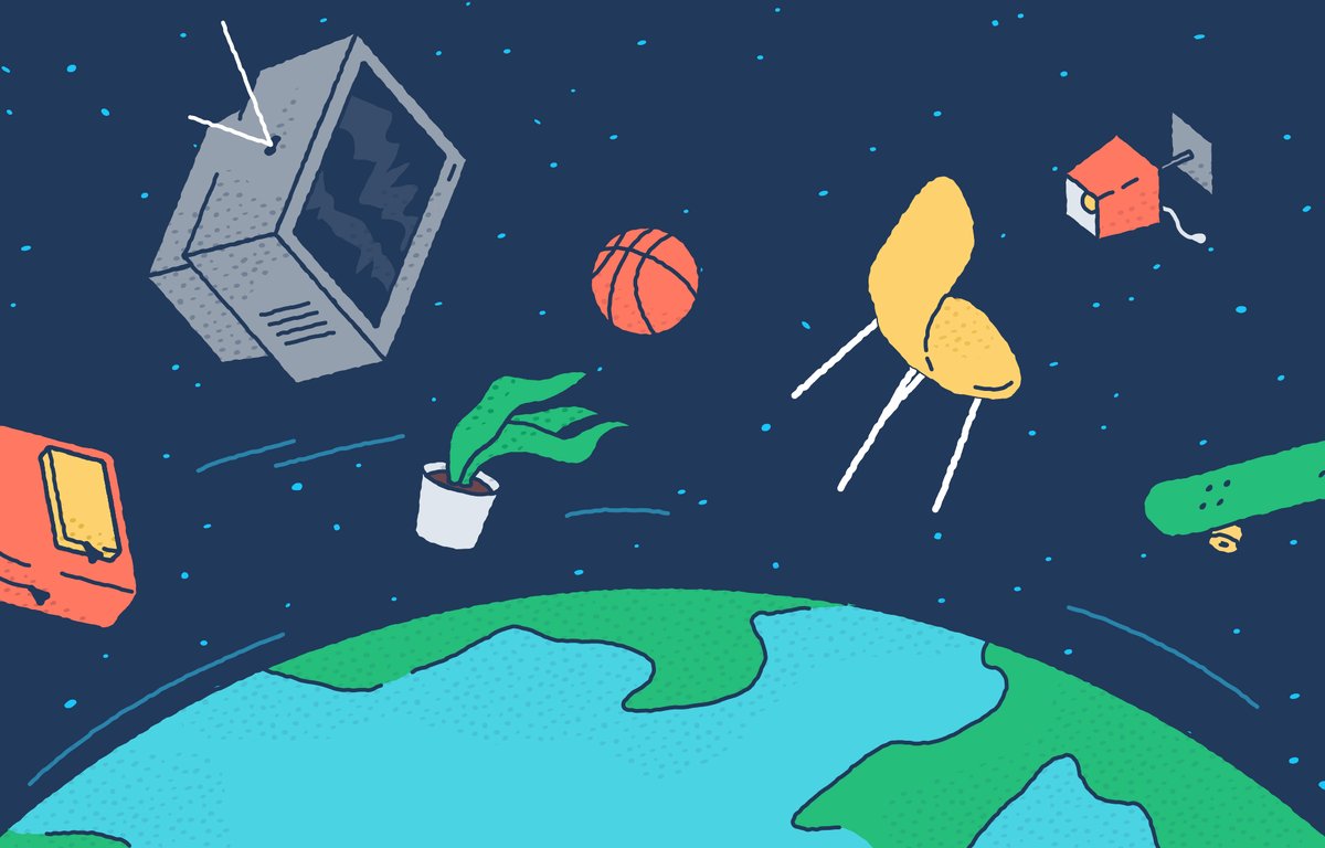 Мы выпустили на орбиту так много предметов — многие из них не используются и постепенно разрушаются, — что теперь Земля окружена множеством обломков. По оценкам ученых из Европейского космического агентства, на орбите — около 29 тысяч объектов, размер которых превышает 10 см. Добавим к этому числу объекты размером от 1 до 10 см — их около 670 тысяч — и объекты от 1 до 1 см — их 170 миллионов (!). Все это затрудняет движение новых космических кораблей или спутников, которые вынуждены осторожно лететь сквозь слой мусора, уворачиваясь от предметов.
