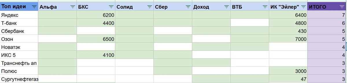 ) 🪙 В этом году я решил запустить новую рубрику, взял все аналитические обзоры и прогнозы, связал их воедино 👬 И получился колсолидированный прогноз по лучшим акциям на 2026 год! (Выборка состоит из отчетов 6 компаний, Альфа, БКС, Солид, Сбер, Доход, ВТБ, Эйлер) И так, консолидированный рейтинг: 1️⃣Яндекс 7 из 7 выбрали компанию, как наиболее перспективную, с потенциальной доходностью 45% за 2026 год! Мнение Работящих денег 💵: Согласен с аналитиками, яндекс отличный кандидат на место в растущей части портфеля. 2️⃣Т-Банк выбрали 6 из 7, только ВТБ-шники решили, что он не достоит быть в топ идеях. Ожидаемая доха на уровне 50% 🤯 Мнение РД 💵: Это моя топовая идея на 2026 год, тут будут основные покупки. 3️⃣Сбер, великий и могучий 5 из 7. Тут ожидаемая полня доходность аж на 57% 🥶 Мнение РД 💵: Мой топовый актив, с наибольшей долей. Но выше 300 не покупаю. 4️⃣Озон 5 из 7, и рекордная потенциальная доходность в 61% Мнение РД 💵: У меня нет и не было этого актива, считаю это непл