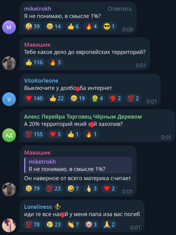 Напомню, он заявил, что передача Донбасса России — это ловушка, так как за четыре года войны Россия заняла меньше 1% территории Украины. По его словам, это позволило бы ВС РФ освободить войска для использования их на другом направлении или на европейском театре военных действий. После этого высказывания в украинских комментариях начался сущий кошмар. Подпишись на Телеграм Александр Семченко