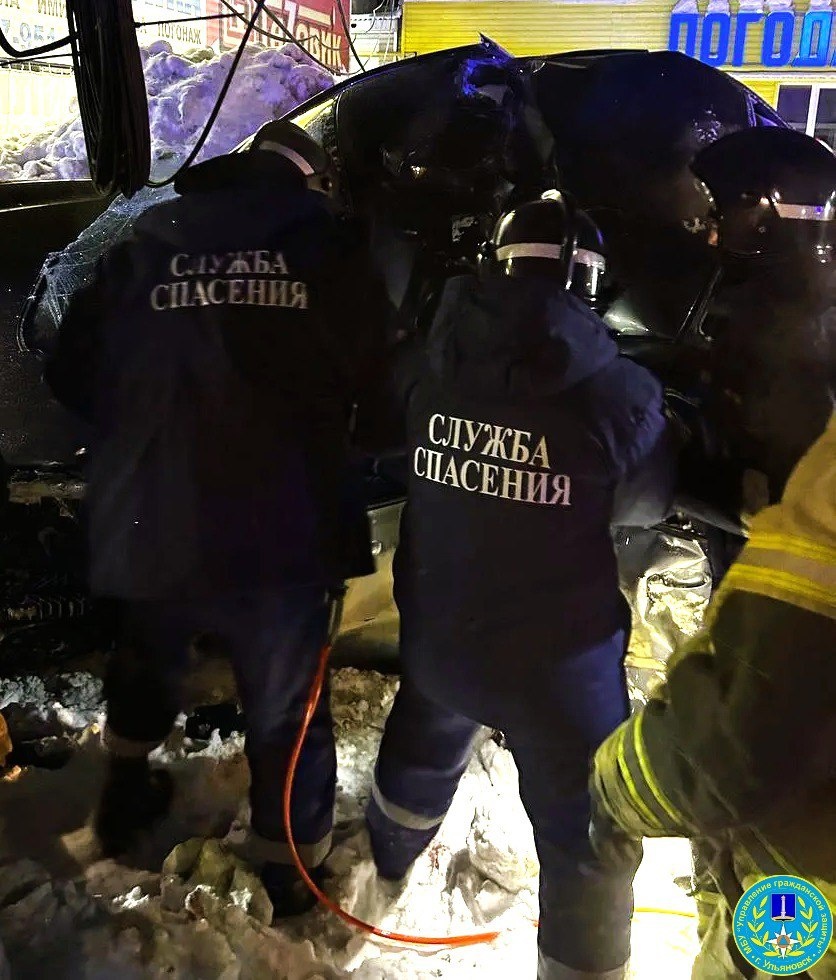 Ульяновские спасатели помогли достать мужчину, зажатого в авто после аварии на Урицкого