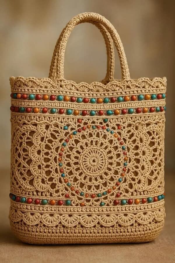 Думаю,я смогу её связать по фото, если кто-то захочет присоединиться, давайте вязать вместе... Следующая сумка, тоже найдена там же и так же связать её не составит большого труда. Похожа на сумку-торбочку... обожаю такие сумки, стильно, легко... повесил на плечо и руки свободны и вещи прибраны. Связана тоже по типу торбы из шестиугольных мотивов. Вяжется по кругу узором "ракушка" И опять же мой любимый БК (Бабушкин квадрат), эту сумочку я бы тоже связала, если рук добавить 😉🙂