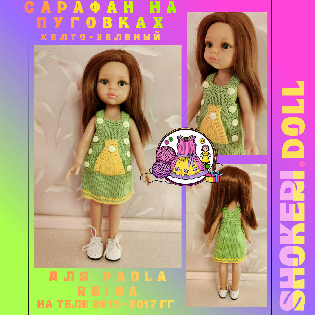 Яркий, удобный и полный солнечного настроения! Этот сарафан создан для активных игр и весёлых приключений вашей куклы. Сочетание сочной зелени и солнечного жёлтого моментально поднимает настроение и делает образ невероятно живым. 🌼 Радость в деталях: 🦠 Этот сарафан — воплощение детской радости, готовое отправиться с куклой на самые интересные прогулки. Сарафан связан из 100% сербского хлопка высочайшего качества. Эта пряжа невероятно мягкая, прочная, гипоаллергенна и позволяет коже куклы «дышать», что делает её идеальной для долгих и активных игр. Средства с продажи идут на разработку социальной сети для животных shoker world. Задать любой вопрос по товару или приобрести его можно у нас на ТГ канале (отключайте уведомления, я спамлю) https://t.me/shokeri_shop