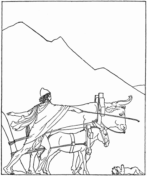 ...Одиссею (Улиссу) было предсказано, что если он пойдёт под Трою, то вернётся через 20 лет нищим и без спутников, и он притворился безумным, запряг в плуг коня и быка и стал СЕЯТЬ СОЛЬ. Паламед же положил новорождённого Телемаха (сына Улисса от Пенелопы) под плуг, и Одиссей вынужден был признаться в обмане.