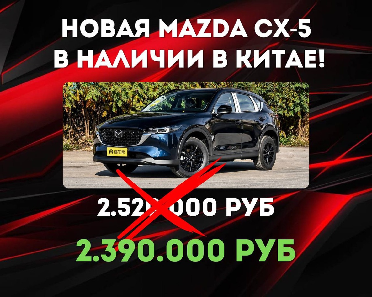 🏷 Mazda CX-5 (в наличии в Китае) 🔴Комплектация Comfort 🔴Автомобиль готов к отправке в РФ 🔴Срок поставки до таможни - 1 неделя 🔴Доступен в КРАСНОМ / ЧЕРНОМ / БЕЛОМ цветах 🔴Предложение действует до 01.02.2026 🚨 ⚙️[Привод] 2WD 🏎[Объем] 2.0, 155 л.с., бензин 🕹[Трансмиссия] АКПП 📊[По курсу] 11.03 💵[Цена] 2.520.000💸 2.390.000💸 *под ключ со всеми расходами до г. Владивосток 1️⃣2️⃣3️⃣4️⃣5️⃣ 📱Менеджер в телеграмм 🔴 Адрес Офиса и Отзывы 📖 Этапы работы 🌐 Сайт 💙 VK 📺 YT 📞+7(423)202-34-74