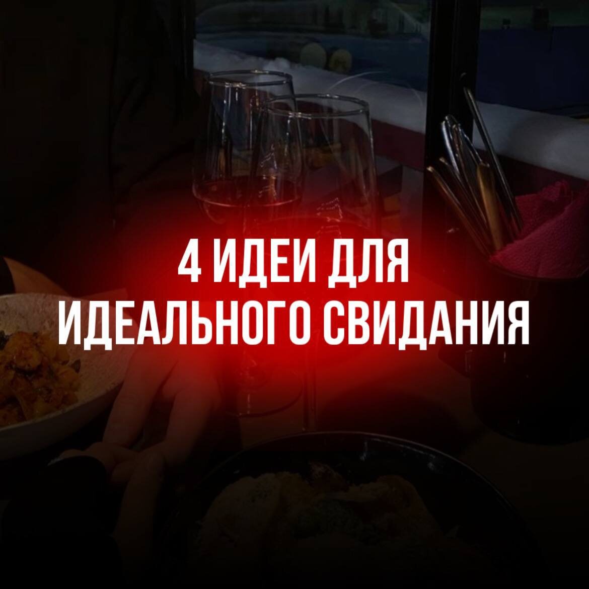 💕 Вот четыре оригинальных идеи, которые помогут вам провести идеальное свидание! 1. Свидание в темноте на площадке «Втемноте» ✨ Полная темнота и только ваши чувства. Вы сможете насладиться вкусной едой, не отвлекаясь на визуальные стимулы. Это создаст уникальную атмосферу близости и доверия, ведь вам предстоит полагаться только на вкус и запах. 2. Пластилиновое свидание Вернитесь в детство и дайте волю своей креативности! Пластилиновое свидание — это не только весело, но и позволяет раскрыть ваш внутренний художник. 3. Ужин с настольными играми Соберите любимые настольные игры и приготовьте ужин! 4. Завтрак в кофейне Завтрак в уютной кофейне — это отличный способ провести время вдвоем и насладиться утренним кофе и свежей выпечкой. Надеемся, эти идеи вдохновят вас на создание незабываемых моментов с вашим партнером! ❤️