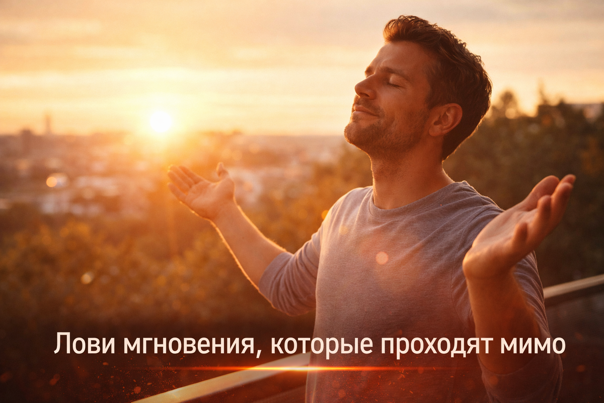 Мы спешим, проверяем телефоны, делаем «важные дела», а самые простые моменты — смех ребёнка, солнечный свет, разговор с другом — проходят мимо.