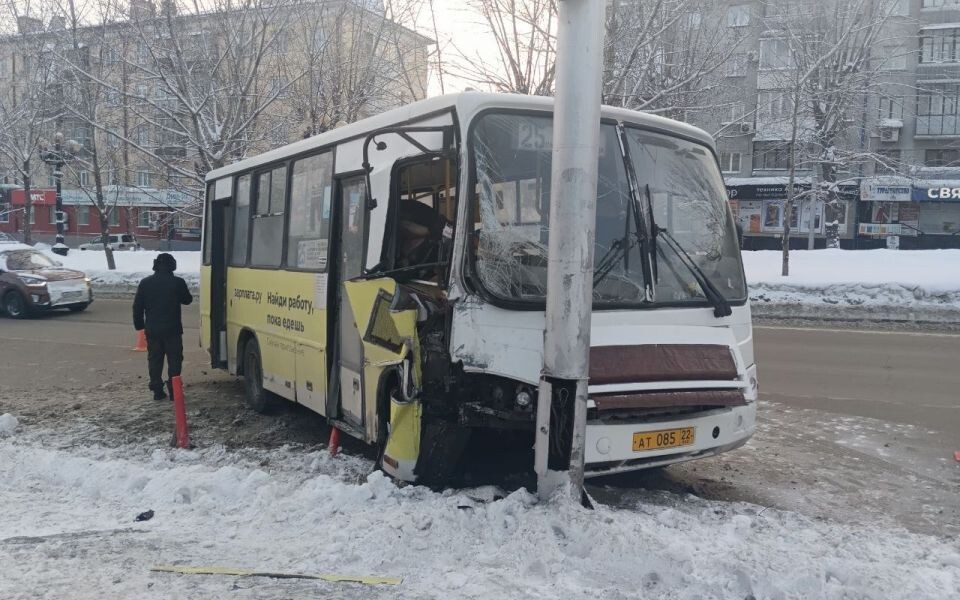 Водителя и пассажирку маршрутки увезли в больницу после ДТП со столбом в Барнауле
