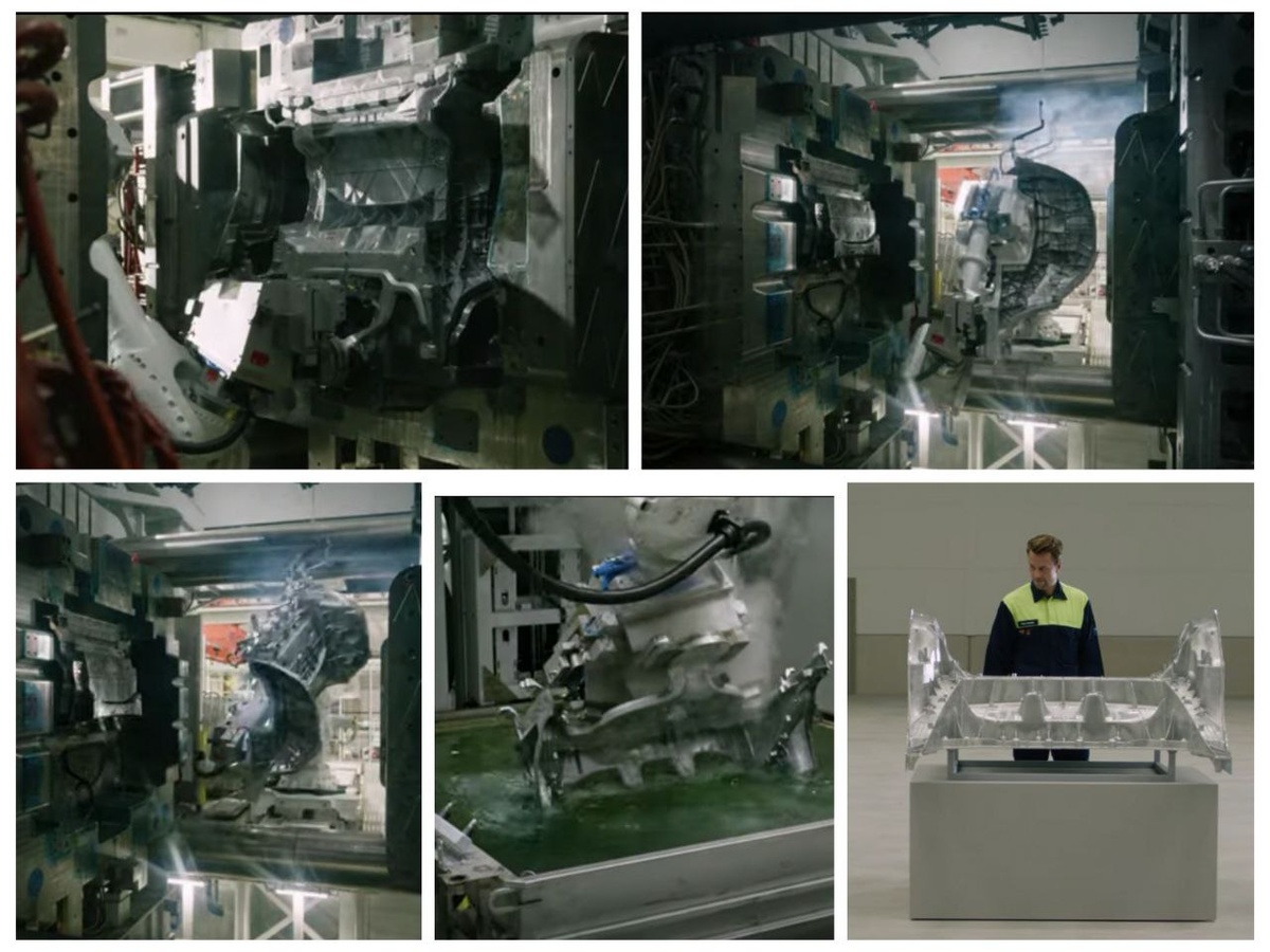 В новейшем видео с официального YouTube-канала Volvo наконец можно увидеть процесс получения гигаотливок для модели EX60 на заводе Торсланда в окрестностях Гетеборга (Швеция). В силу особенностей оборудования (подробнее см. тут) сама гигаотливка весьма напоминает аналогичный компонент у Tesla. Изготавливается целиковый задний блок основания кузова - одна отливка из алюминиевого сплава, заменяющая традиционно свариваемый узел из 100 штампованных деталей. Что интересно и ново по сравнению с аналогичной технологией у Tesla: отдельной операцией технологического цикла является термическая обработка (закалка) - сразу после извлечения из пресс-формы промышленный робот окунает отливку в бак с водой или маслом определённой температуры. Самый интригующий для меня вопрос: как будет производиться гарантийный кузовной ремонт в случае локального повреждения такой термически упрочненной отливки размером в треть основания кузова? Полагаю, сразу в «тотал» авто списывать не будут - было бы совсем нед