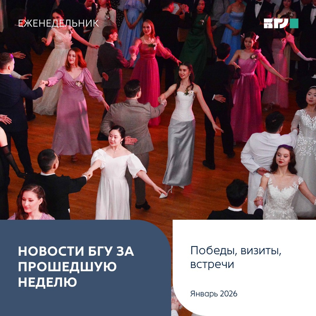 1. Бурятский госуниверситет на Зимнем балу мэра города Улан-Удэ Подробнее: https://www.bsu.ru/news/33074/ 2. В БГУ прошел вечер открытых дверей для родителей абитуриентов Подробнее: https://www.bsu.ru/news/33066/ 3. Студенты и аспиранты БГУ стали призерами Всероссийского конкурса научно-исследовательских работ «IT Прорыв» Подробнее: https://www.bsu.ru/news/33076/ 4. Визит делегации Монгольского госуниверситета науки и технологий в БГУ Подробнее: https://www.bsu.ru/news/33068/ 5. Победа иностранных студентов БГУ в Международном конкурсе Подробнее: https://www.bsu.ru/news/33063/ #ЕженедельникБГУ #НовостиБГУ #БГУ #Новости