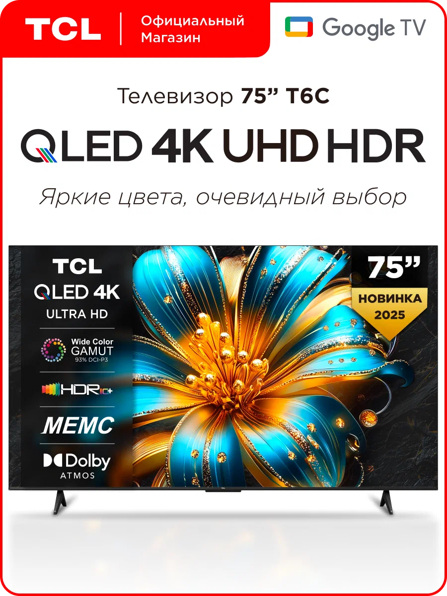 Серия TCL T6C QLED 4K как раз из таких: тысячи покупок, высокий рейтинг, Google TV без тормозов — и всё это часто попадает под жирные скидки. Ниже — максимально конверсионный разбор: кому подойдёт, какие есть нюансы, какую диагональ взять и где удобнее купить. Если вы устали от “серого чёрного” и блеклых цветов — QLED в T6C решает. Картинка выглядит ярко, насыщенно и при этом без “кислоты”. YouTube, Кинопоиск, ОККО, приложения из Google Play — ставится легко. Многие покупатели пишут, что приставка вообще не нужна. T6C часто берут как основной семейный ТВ: кино, сериалы, приставка, дети — тянет всё без истерик. TCL T6C — линейка QLED-телевизоров 4K UHD на Google TV с диагоналями: