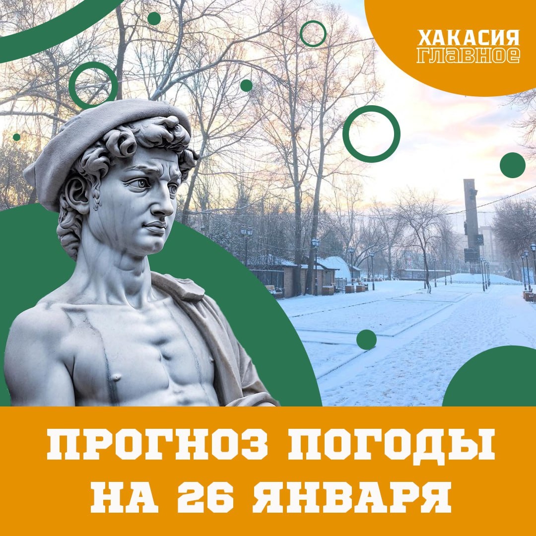 Согласно прогнозу погоды от главного синоптика республики Татьяны Ивановой, сегодня, 26 января по Республике Хакасия: ☀️ -15... -20 С°, местами -7... -12 С° Переменная облачность, местами небольшой снег. Ветер восточный 2-7 м/с, местами порывы до 12 м/с. На дорогах гололедица. В Абакане: ☀️ -16... -18 С° Также переменная облачность, слабый снег. Ветер восточный 2-7 м/с. На дорогах гололедица. Водителям и пешеходам стоит соблюдать осторожность 🖼Хакасия. Главное здесь
