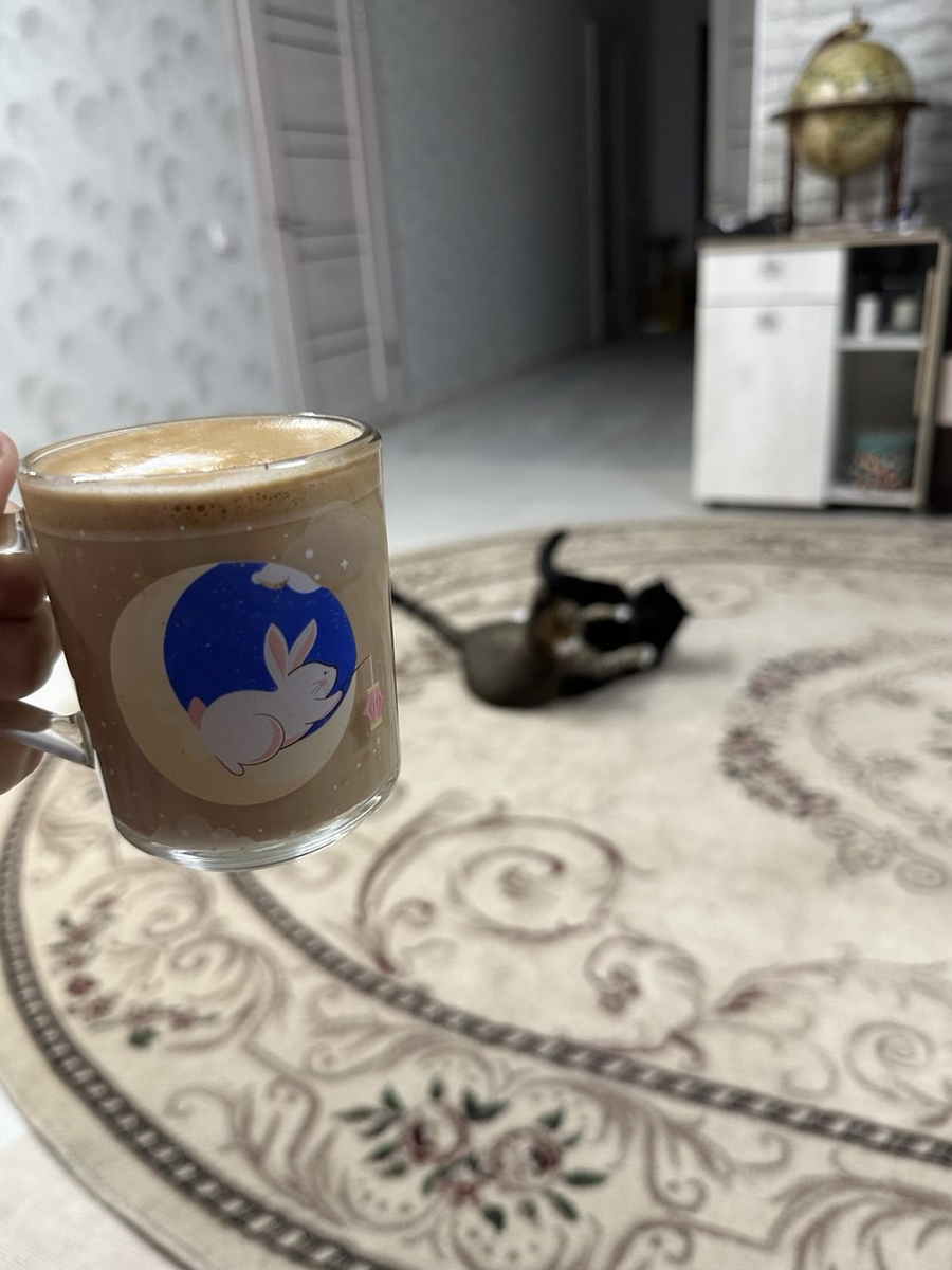 Доброе утро! У вас какое утро? У нас вот так сегодня. Обычно, с утра, япью американо и очень- очень редко делаю себе эспрессо, у меня и две малюсенькие, кофейные чашки для этого есть. А сегодня захотелось капучино, даже скорее латте, ну конечно этим не обойдётся, пошла работать и навела себе бадью кофейка. Пенка опала, пока я с Тимошей любалась, да Арчуше лялю давала, кискам влажный корм, у нас ритуал с утра пакетик корма, Дуня с шести часов( а может и свечера) у холодильника сидит, Ира часов с пяти пробирается в комнату, поёт мне песни на ухо, теребит волосы, главное Серёжу не трогает, а меня, да. Разве можно отказать этим глазкам в целовании и обнимании? Я пошла заниматься, он лёг, я его укрыла любимым пледиком, всё, спит, хоть спокойно позанимаюсь. Ну как же без зрителей? Вот такое утро, а у вас? А так выглядит понедельник по мнению ИИ))) Пусть ваш понедельник будет весёлым и задорным парнем. Мавруша и все- все-все.