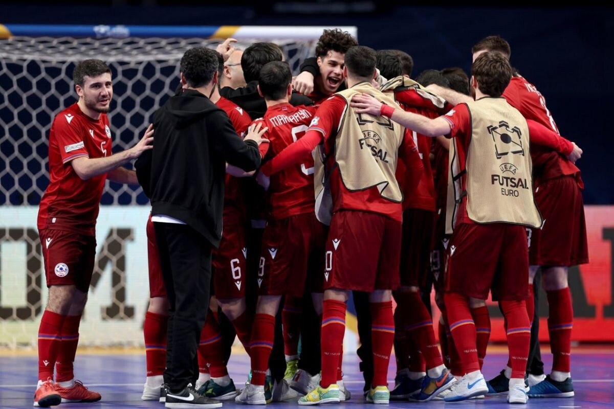 Сборная Армении по футзалу с победы стартовала на ЕВРО-2026, проходящем в Латвии, Литве и Словении. В первом матче группы B наша команда на «Жальгирис Арене» в Каунасе со счетом 2:1 обыграла сильную сборную Украины. УЖЕ ПЕРВЫЙ СОПЕРНИК СТАЛ ДЛЯ НАШЕЙ СБОРНОЙ ТРУДНЫМ ИСПЫТАНИЕМ, которое было с честью преодолено. Украинцы – бронзовые призеры чемпионата мира 2024 года. Эта команда также дважды становилась серебряным призером чемпионатов Европы. Однако сборная Армении, дебютировав в финальном раунде турнира, сразу показала, что с ней придется считаться даже фаворитам. Все голы были забиты во втором тайме (футзальный матч состоит из двух таймов по 20 минут). На 26-й минуте счет открыли украинцы – отличился Владислав Первеев. Однако подопечные Рубена Назаретяна проявила характер: на 30-й минуте Мигран Дерменджян сравнял счет после шикарного паса пяткой от Арсена Петросова, а на 39-й минуте он же точным ударом принес команде историческую победу – 2:1. Стартовый состав сборной А