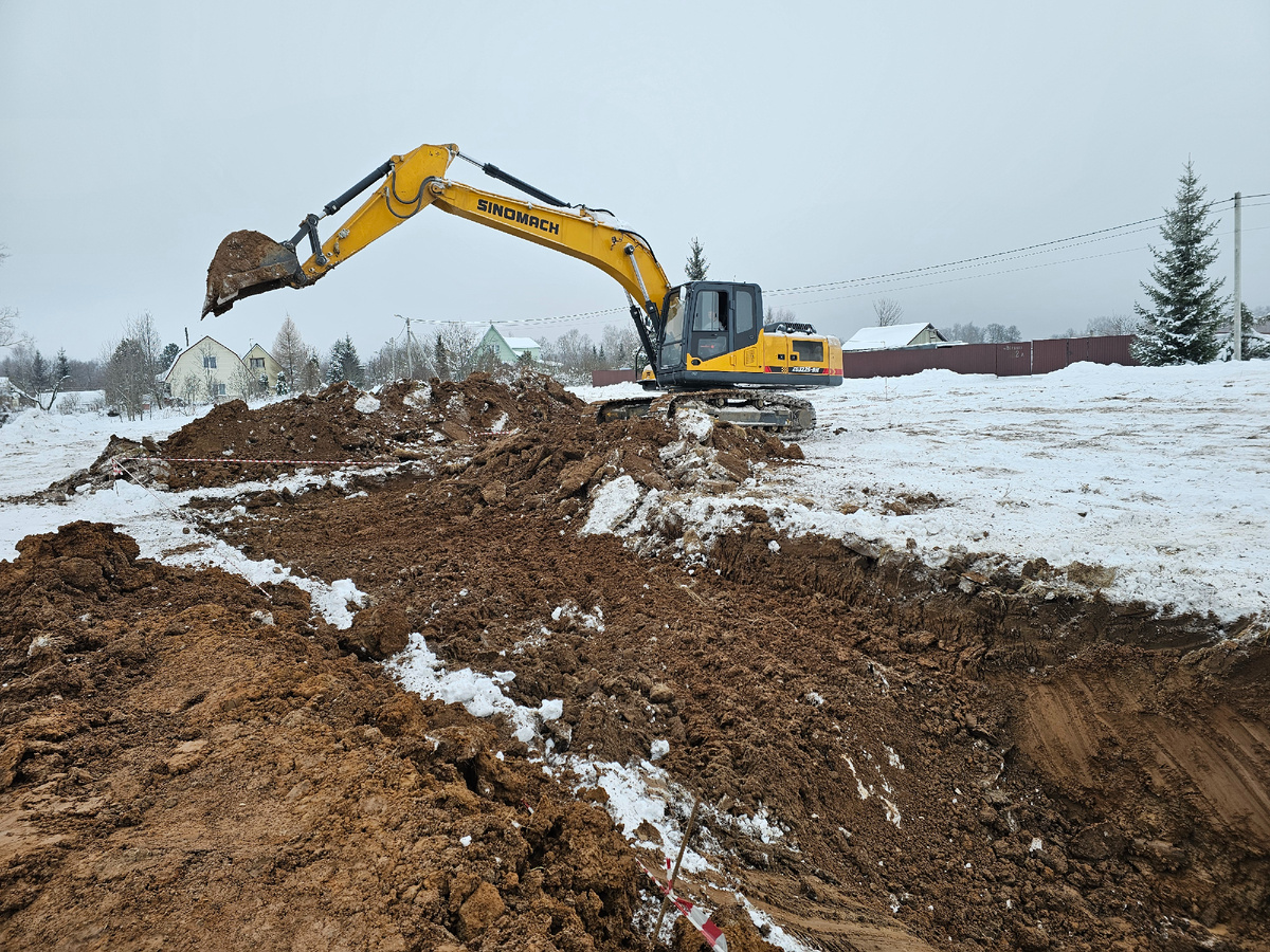 На видео с моего участка хорошо видно, как экскаватор аккуратно формирует откосы и чисто режет стенку котлована. Это как раз результат работы по плотному, подмёрзшему грунту, а не по «весеннему киселю».