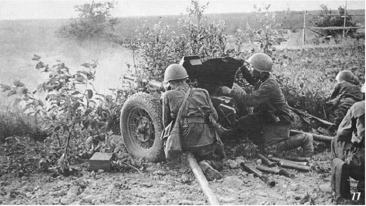 Долго спорить и рассуждать не дала приближающаяся с юга стрельба из пулемётов и карабинов, а также сапёры, которым не терпелось рвануть переправу (этим пионерам лишь бы взрывать). Поэтому решаем идти на прорыв через мост. Повлиял на такое решение ещё и командир зенитного (а по совместительству противотанкового орудия), который тоже не хотел бросать свою пушку, и обещал прикрыть нашу атаку артиллерийским огнём. Накоротке «разработав план операции», приступаем к его осуществлению. Зенитка открывает огонь по разведанным целям на опушке рощи справа от шоссе, под прикрытием которого пехота вместе с разведчиками начинает атаку. Моё орудие поддерживает их «огнём и колёсами», расстреливая обнаружившиеся в ходе атаки, огневые точки противника. Проскочив мост, следуем дальше, прямо по автостраде. Махра нас обогнала и устремилась вперёд, но это не страшно, так как бегущих пехотинцев, на рысях догоняет вторая наша сорокапятка и, обогнав, занимает позицию слева от шоссе. Пехота тоже далеко не идёт, а как договаривались, занимает оборону на обочине просёлочной дороги, пересекающей автостраду, в пятистах метрах от моста. Разведчики уходят направо, зачистить рощу от недобитков, а заодно проверить и прикрыть дорогу. Упряжка с передком, и ещё одна пароконная повозка с боеприпасами, догоняют нас в двухстах метрах от моста. Пока мы цепляем орудие, нас обгоняет полуторка с неходячими ранеными, и следующая за ней санитарная повозка (в ней уже в основном ходячие, которые дальше пойдут пешком). Обоз с трёхсотыми сворачивает на просёлок вправо, мы, проскочив вперёд метров триста, влево. Позицию занимаем в «микророще» возле шоссе, а через пять минут к нам присоединяется и второе орудие, заняв огневую неподалёку.