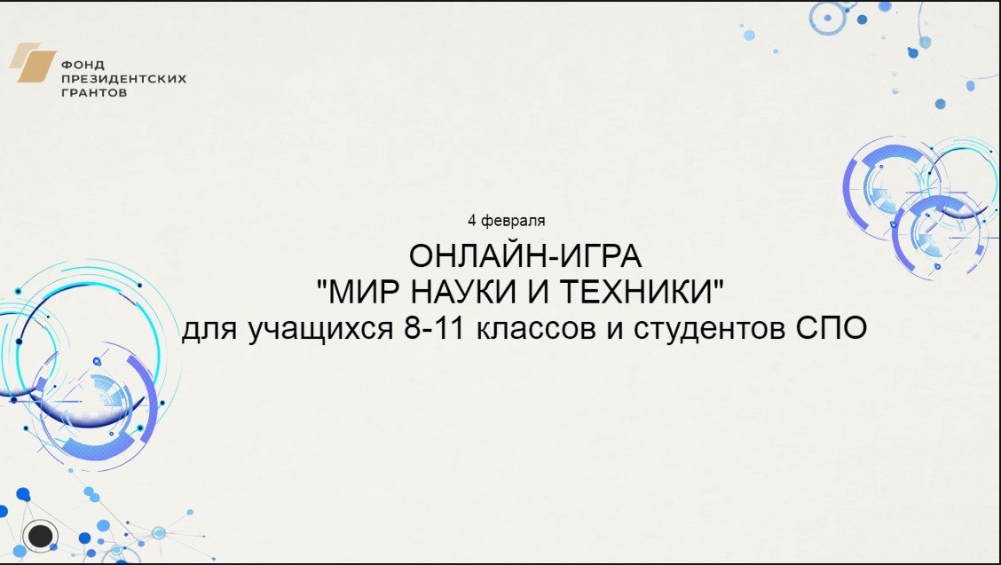 Приглашаем Ваших учащихся принять участие в интеллектуально-творческой игре «МИР НАУКИ И ТЕХНИКИ» для 8-11 классов, студентов СПО