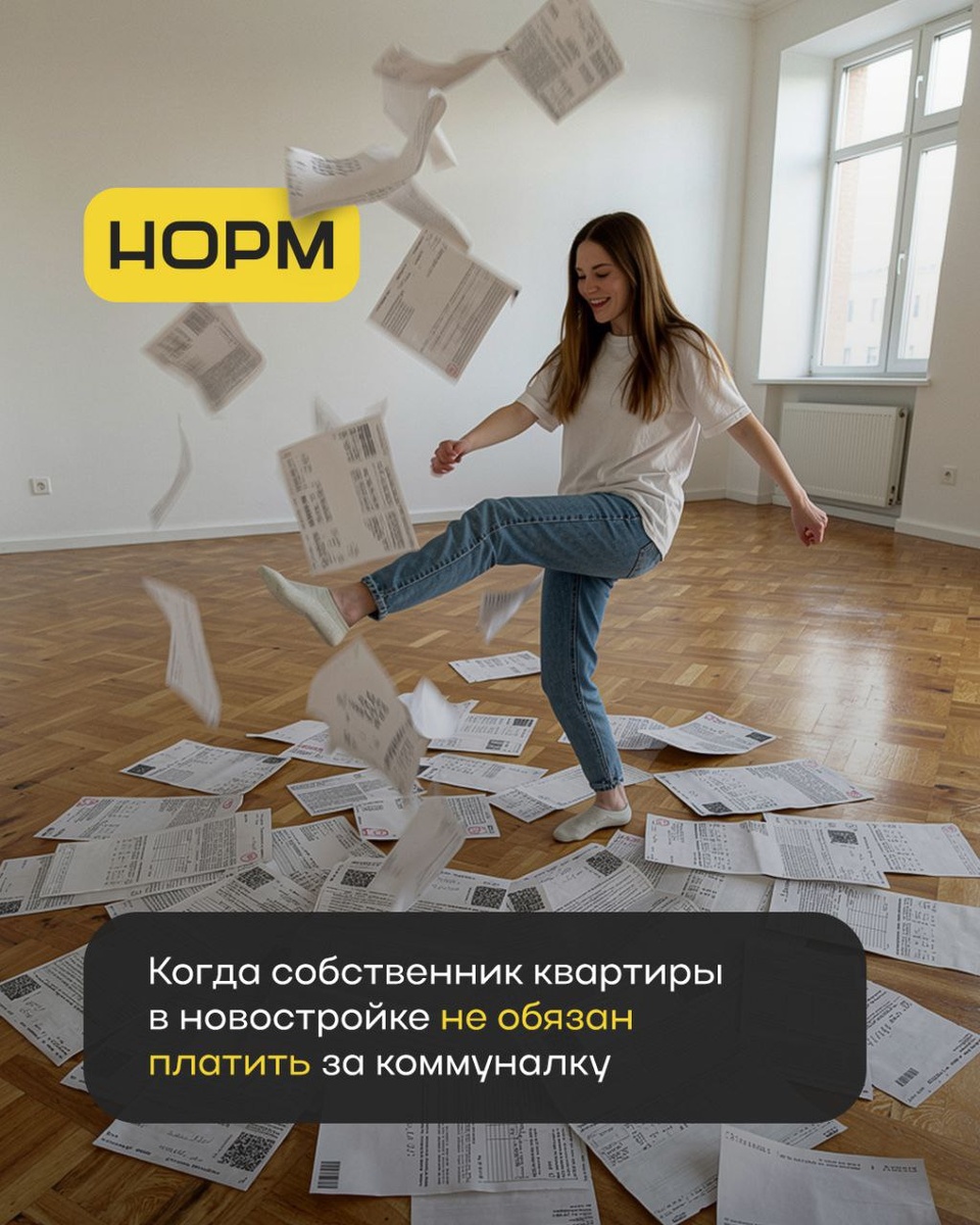 Купил квартиру в новостройке — поздравляем 🎉 Но вместе с ключами часто начинают прилетать счета. И не все из них законны. Разбираем 4 ситуации, когда ты не обязан платить за коммунальные услуги, даже если уже стал собственником. 🤩 Пока не подписан акт приема-передачи квартиры. После того, как дом будет введен в эксплуатацию, застройщик обязан передать квартиры своим дольщикам, это оформляется передаточным актом, подписанным обеими сторонами договора. Именно с этим моментом закон связывает наступление у дольщика обязанности по оплате коммунальных услуг за свою квартиру (п. 6 ч. 2 ст. 153 ЖК РФ). Дольщик может отказаться от подписания акта приема-передачи только, если в квартире обнаружатся существенные недостатки (без устранения которых пользоваться квартирой по назначению невозможно — например, в квартире нет окон, радиаторов отопления, коммуникаций и т. п.). В остальных же случаях (когда недостатки есть, но они несущественные — т. е. жить в принципе можно, хотя обои наклеены не