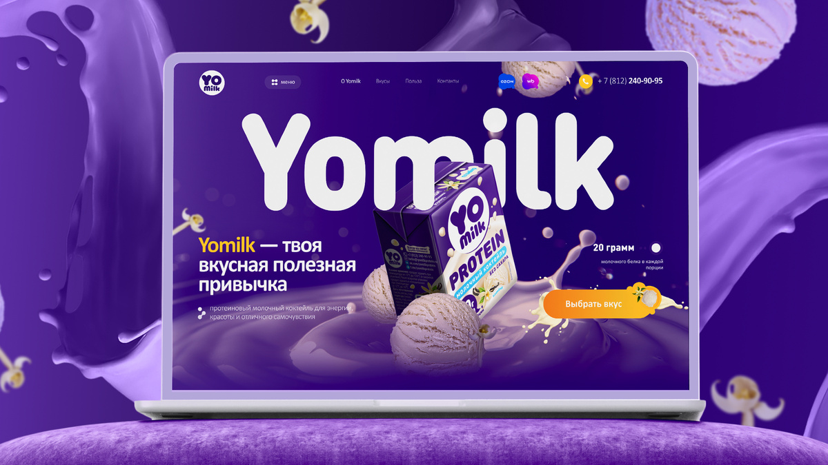 Мы закрыли ключевой риск бренда — выход нового продукта на рынок, где достаточно прямых и косвенных конкурентов. Благодаря маркетинговому анализу и UX-исследованию страница сразу передает ключевые смыслы продукта и его реально сильные конкурентные преимущества и формирует эмоциональную связь с продуктом-новинкой, что было критично для входа YoMilk на конкурентный рынок. В итоге бренд получил цифровую витрину, которая вызывает эмоциональное «хочу попробовать» и рациональное «это полезно и упрощает жизнь с правильным питанием». Все это формирует диджитал-упаковку бренда — эмоциональный дизайн, единый визуальный язык и удобную витрину для презентаций и продаж.
