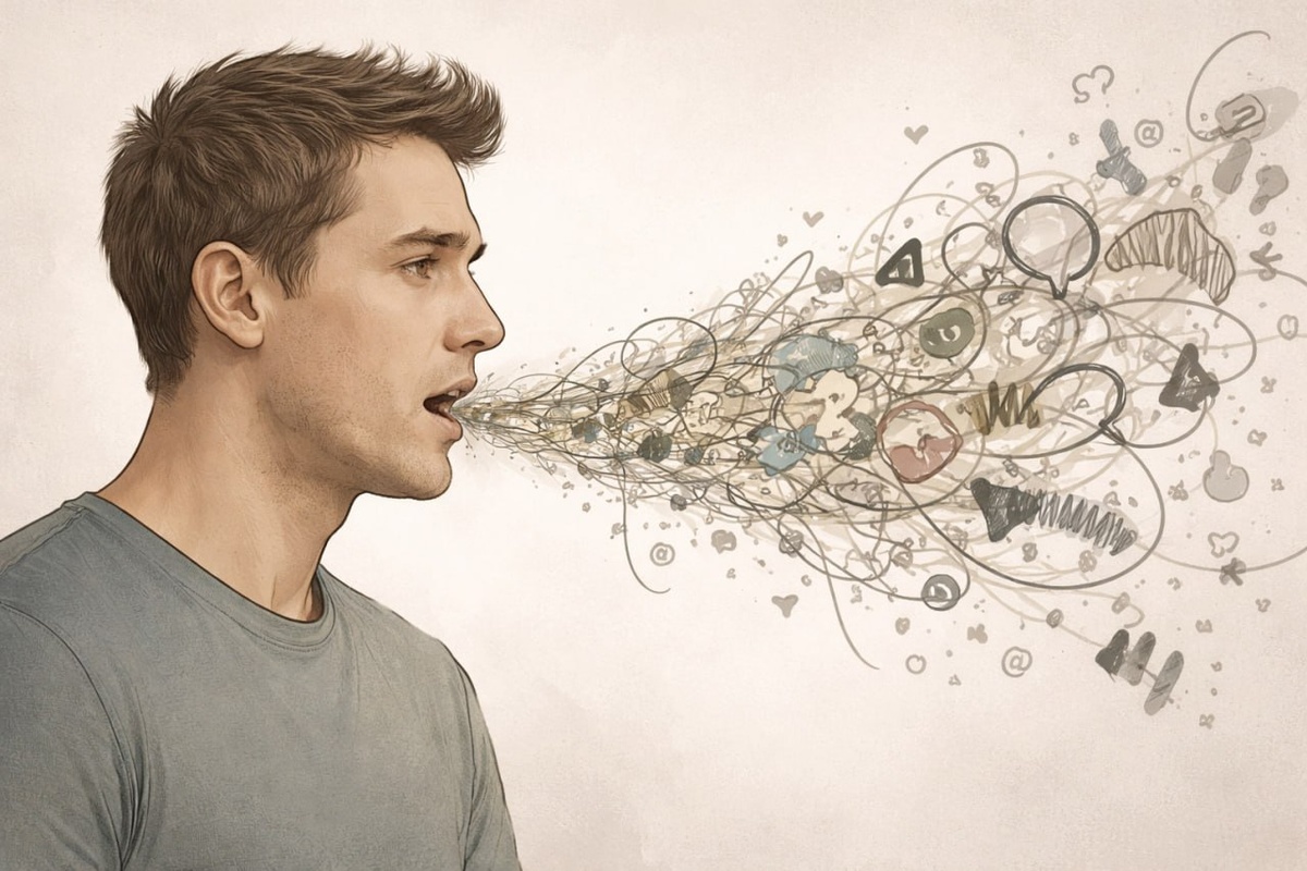 Это техника, в которой человек говорит не на «нормальном» языке, а на бессмысленном наборе звуков, слогов, интонаций. Без логики и цензуры. И без попытки быть понятным.