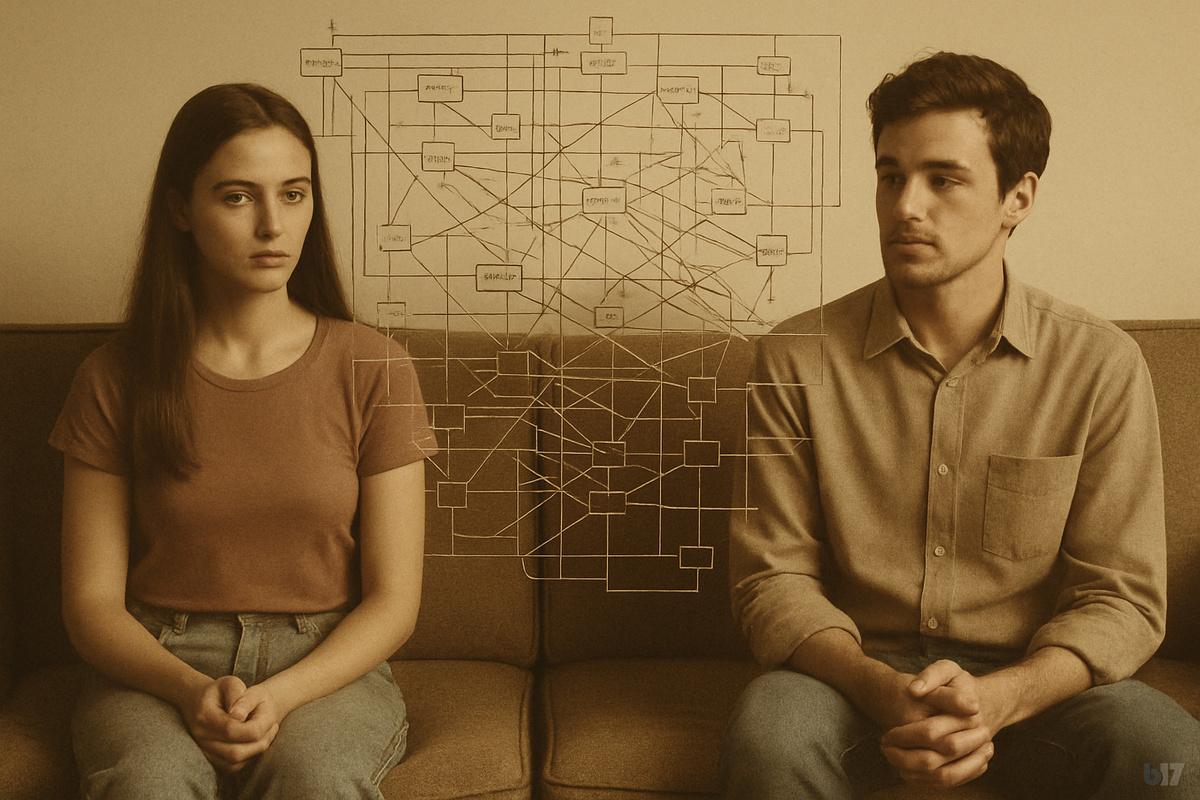 Знакомо? «Нам надо поговорить», «Что ты НА САМОМ ДЕЛЕ имел в виду?», «Это паттерн из твоего детства», «Мы недостаточно прорабатываем наши границы». Звучит умнО. Пахнет психологической грамотностью. А на деле часто оказывается самым изощрённым способом избежать… самих отношений. Потому что проще обсуждать мета-уровень, чем искренне и неуклюже проживать сам уровень.