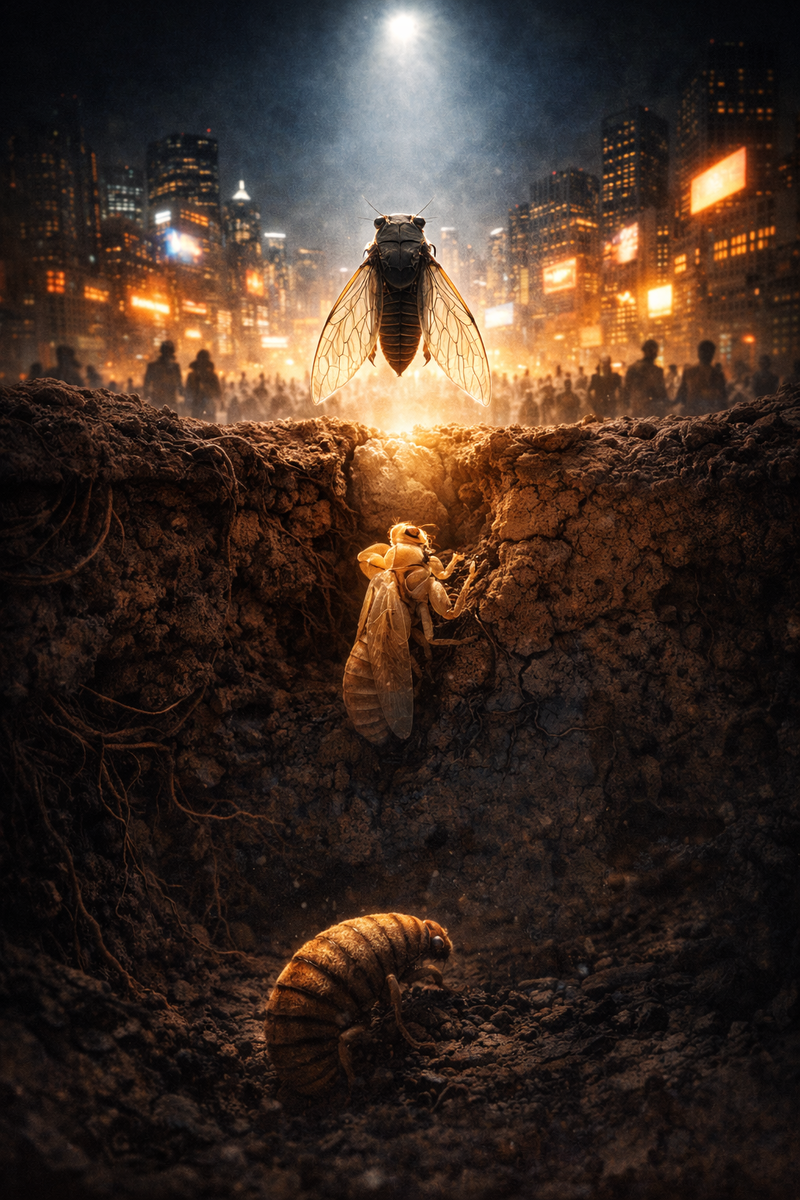 Цикады сидят под землей 17 лет. В темноте и тишине. А потом выходят на поверхность, чтобы пожить и пошуметь всего пару недель — и всё...