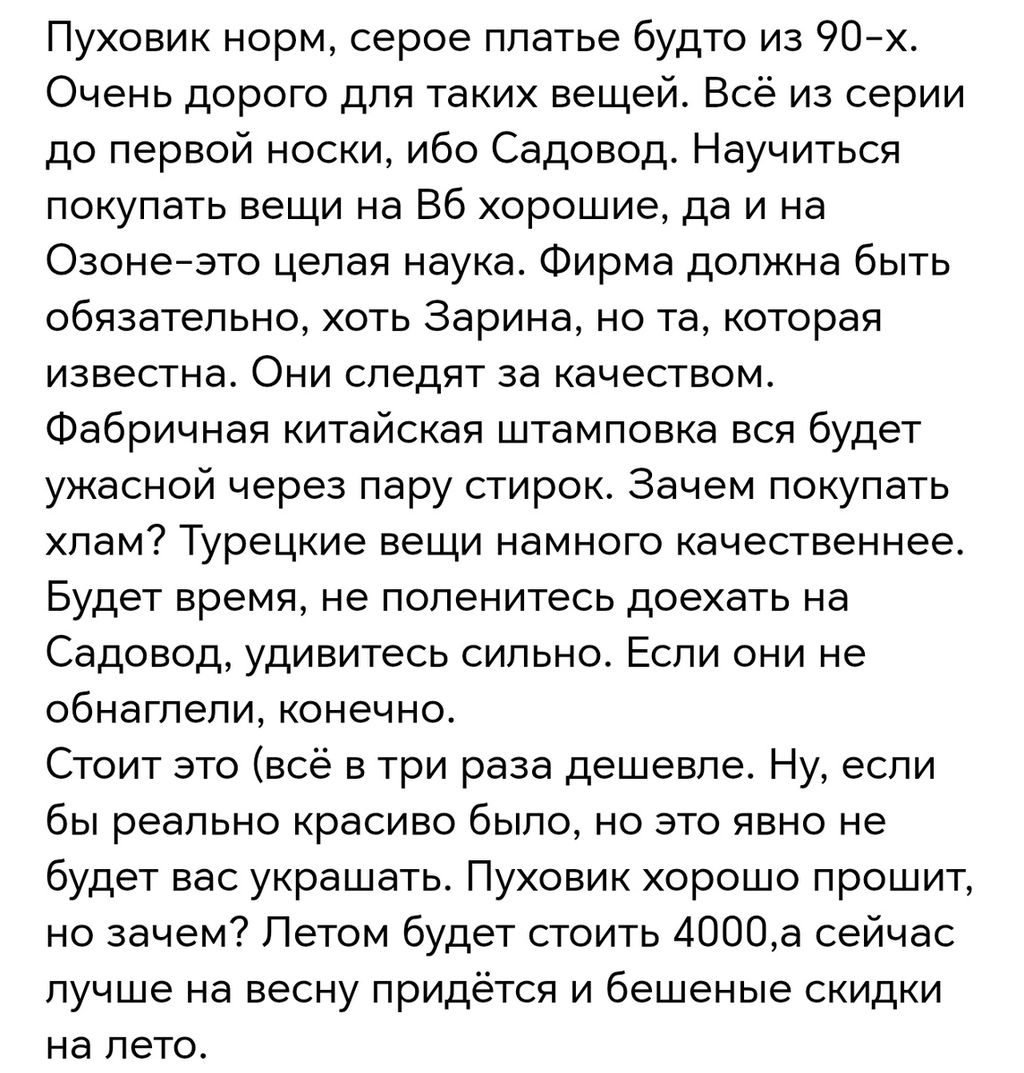 Теперь что касается "Садовода" и качества "Турции". Я терпеть не могу шоппинг, для меня ходить по магазинам - каторга, а уж по рынку тем более. Я в курсе, что там можно одну и ту же вещь купить за дорого и за дёшево, но чтобы найти то, что хочется, нужно оставить там много сил. Я на это не соглашусь ни под каким соусом, легче застрелиться😅.