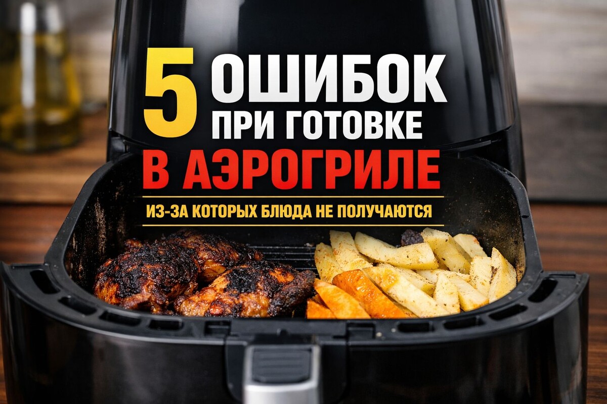 Аэрогриль часто покупают с мыслью: «Сейчас как начну готовить — без масла, быстро и вкусно» А потом реальность такая: — курица сухая — картошка бледная — овощи как варёные — выпечка не пропекается И появляется ощущение: «аэрогриль — ерунда». На самом деле — ошибки очень типичные, и их совершают почти все новички. Разбираем 5 главных промахов, из-за которых блюда не выходят. ⸻ ❌ Ошибка №1. Переполнять корзину продуктами Это самая частая ошибка. Аэрогриль готовит не магией, а горячим воздухом, который должен свободно циркулировать. Когда вы: