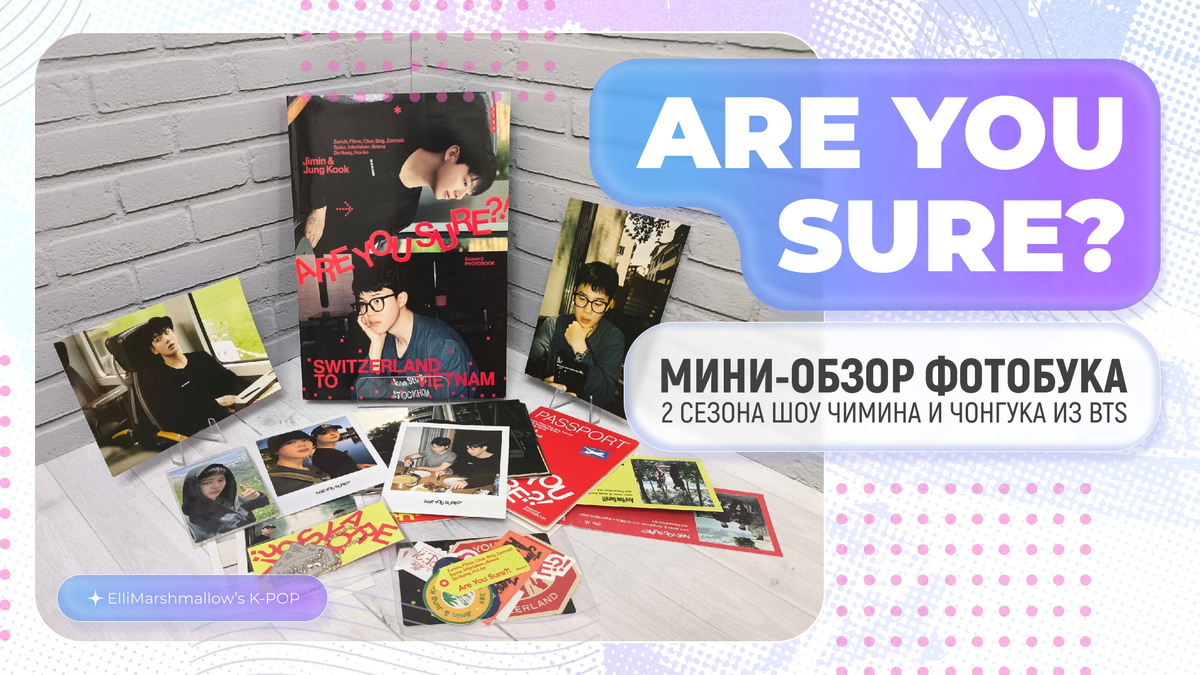 Ко мне на днях пришел фотобук ко 2 сезону тревел-шоу Are You Sure? от пусанцев! Само шоу вышло буквально в декабре, а у меня уже в руках фотобук, надо же! Хотела по этому поводу сделать только пост с парой картинок, чтобы поделиться радостью, ноооо... Получился мини-обзор и не только с радостью. Потом уже сделаю полноценный обзор с видео и прочим. Пока так. Информация, что это за шоу, и какое отношение к нему имеют Чимин и Чонгук из BTS, вот тут: У меня уже был фотобук к первому сезону, вышедшему в 2024 году, так что о некоторых вещах я буду говорить в сравнении. Первое, что меня поразило еще на почте - насколько увесистым получился релиз в этот раз. В релизе кроме того есть такой пухленький конвертик с "макулатурой" - всякими брелочками, наклеечками, карточками, открыточками и т.д. Однако конверт настолько неудачный, что содержимое продавило и процарапало не только этот конверт, но и само себя и, что самое обидное, обложку фотобука! Не то что бы для меня и моей личной коллекции это б