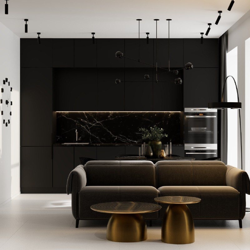 Глубины, насыщенности и функциональности удалось достичь за счёт правильно подобранной мебели. Paul, столики Monza Brass и кровать Vivienne «оживили» локацию визуально – тёмный диван между белым полом и таким же потолком рождает ощущение невесомости – и в прямом смысле слова сделали её пригодной для комфортной жизни.