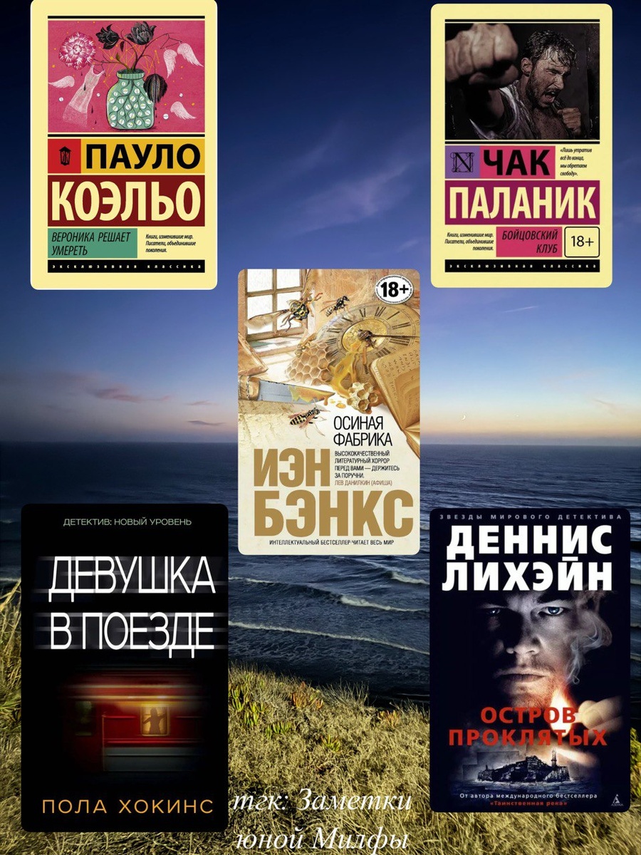 Наравне с красивым слогом, в книгах я люблю неожиданную развязку. Иногда за это можно простить даже корявость текста. Вот мой список из пяти произведений, он не исчерпывающий, само собой: 1) «Бойцовский клуб» Чака Паланика. «Первое правило бойцовского клуба…». Людей, не знающих эту фразу, наверно, не существует. Это дебютная работа Чака Паланика, прославившая его на весь мир благодаря одноименной экранизации Дэвида Финчера. Страдающий бессонницей главный герой знакомится с одним парнем, и вместе они организуют подпольные бои для психических разрядок. Как я писала ранее в другой статье («Книги, которые я прочитала в правильное время (с 20 до 23 лет)»), именно с этого произведения началось мое запойное чтение. Несмотря на то, что Паланик давно не выпускает качественную литературу, я рада, что мое читательское путешествие началось именно с него. Он сумел затронуть струны моей души так, чтобы жажда чтения не иссякала. 2) «Веро́ника решает умереть» Пауло Коэльо. Сразу стоит обозначить, Коэл